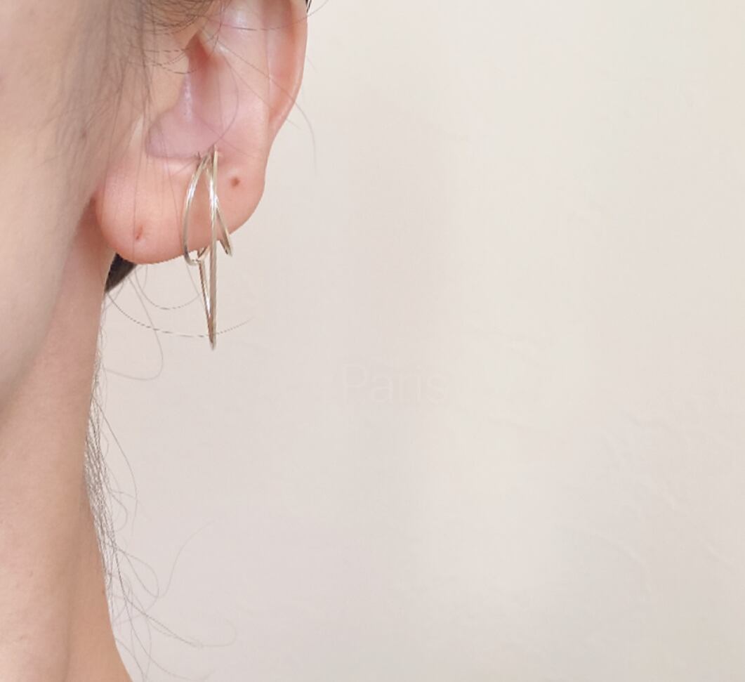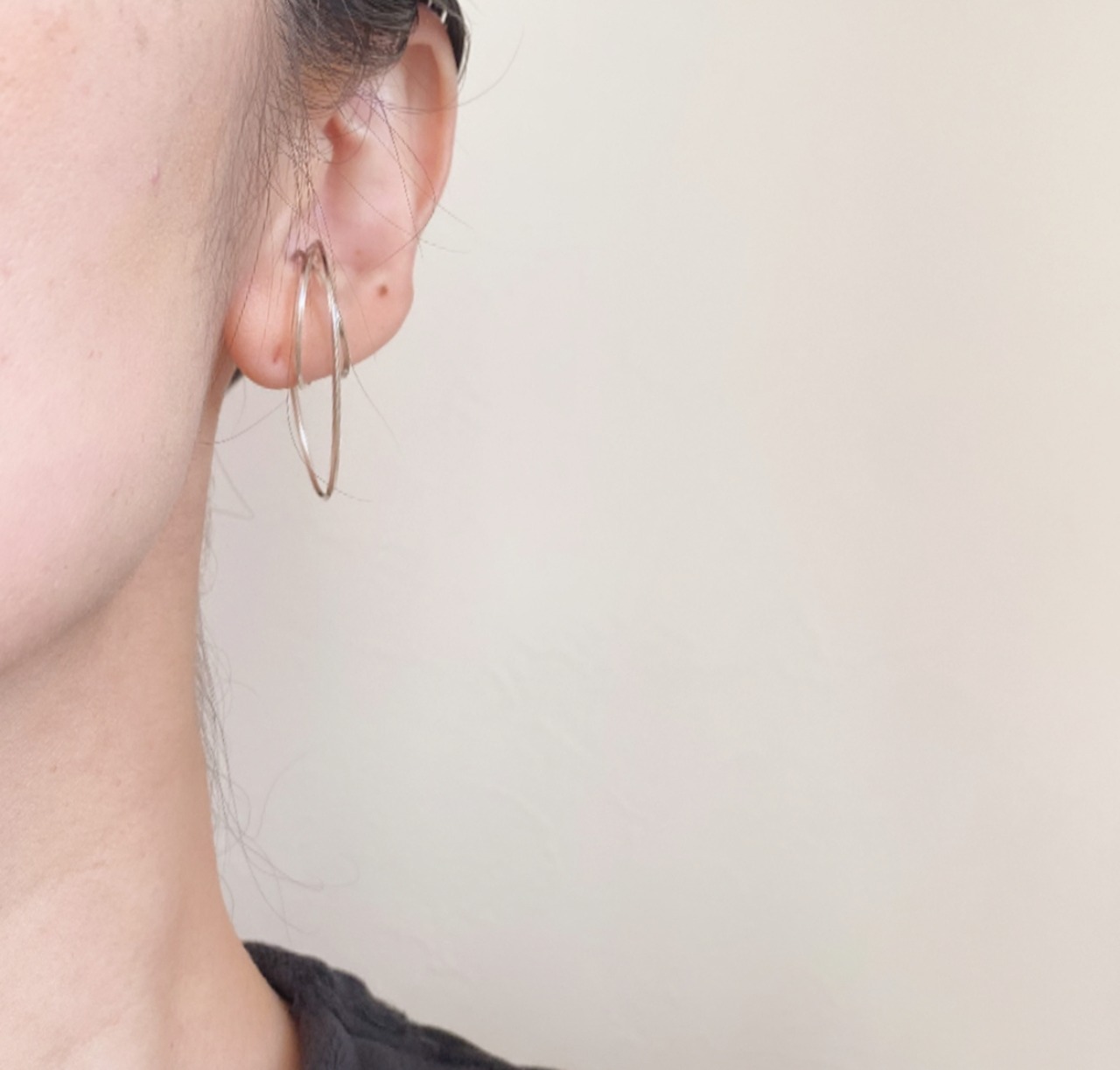ご好評いただいているdiagonalシリーズのオーバルフープとフープか重なるイヤーカフ。