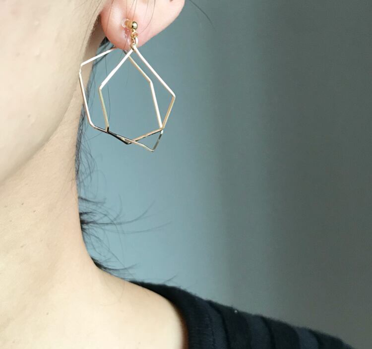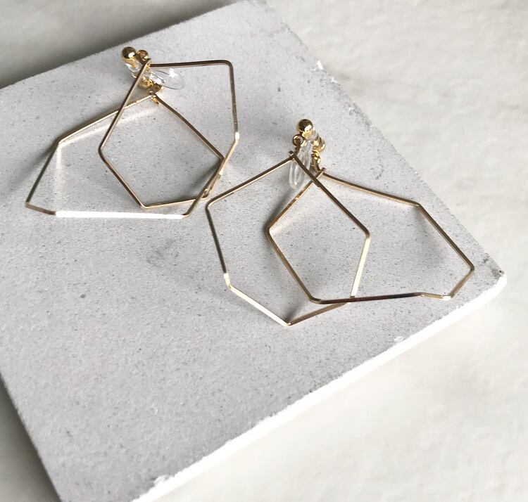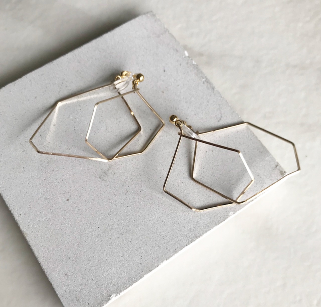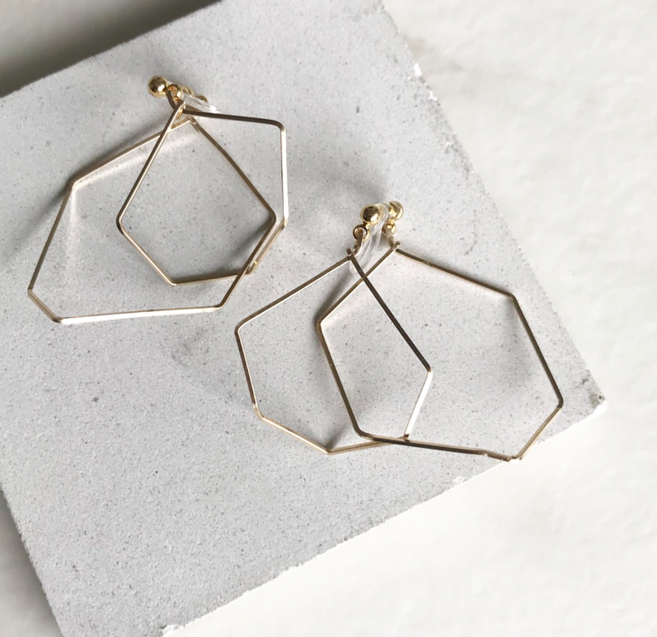 14kgf overlap 多角形フープ ノンホールピアス イヤリング