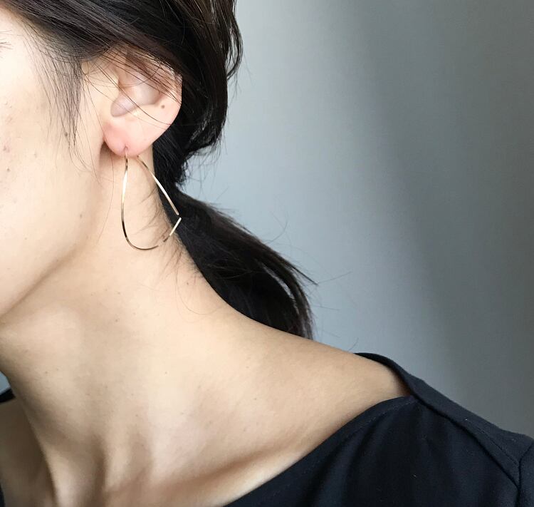 華奢なラインとシンプルな作りで悪目立ちせずどなたにもお召しいただきやすいピアスです。