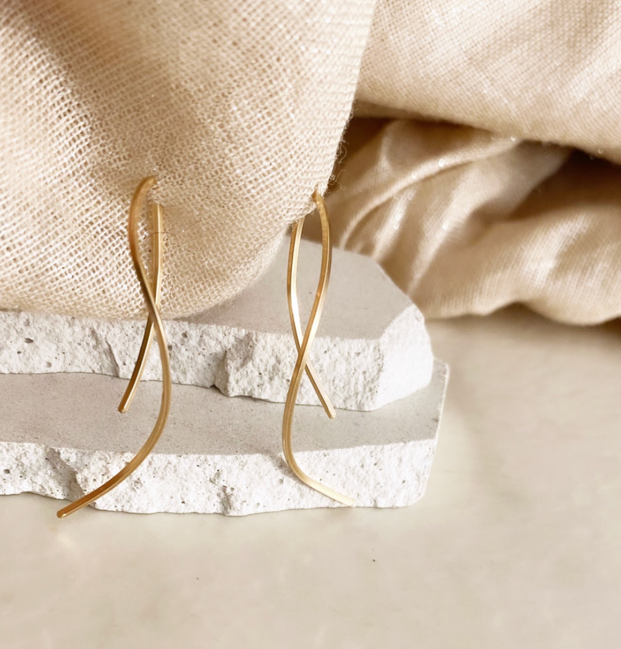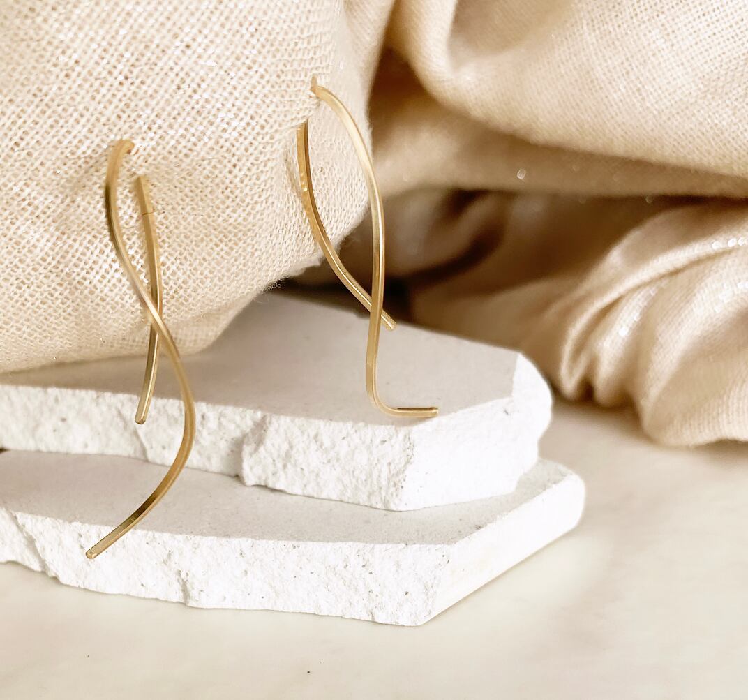 上質感あるゴールドフィルドのスクエアワイヤーを螺旋状に形作った、華奢でモダンなピアスです。