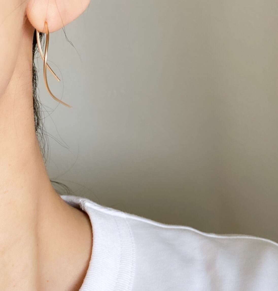 ✴︎こちらのピアスはスクエアワイヤーを使用して制作しておりますため、通常のピアスポストよりも若干太めとなっております。(線径は約0.8㎜です)普段からピアスをご着用の方は問題なくお召し頂けると思いますが、ホールを空けたばかりの方や、ホールが小さめと感じる方はご注意くださいませ。