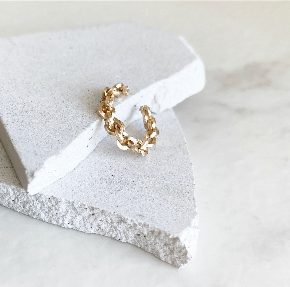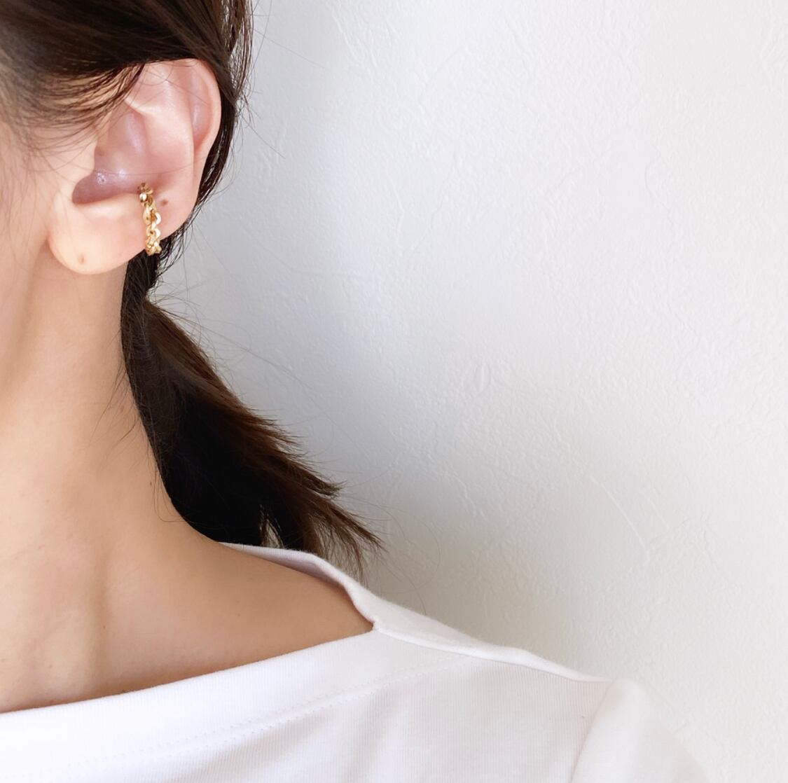 スクエアワイヤーを編み上げたようなイヤーカフ。