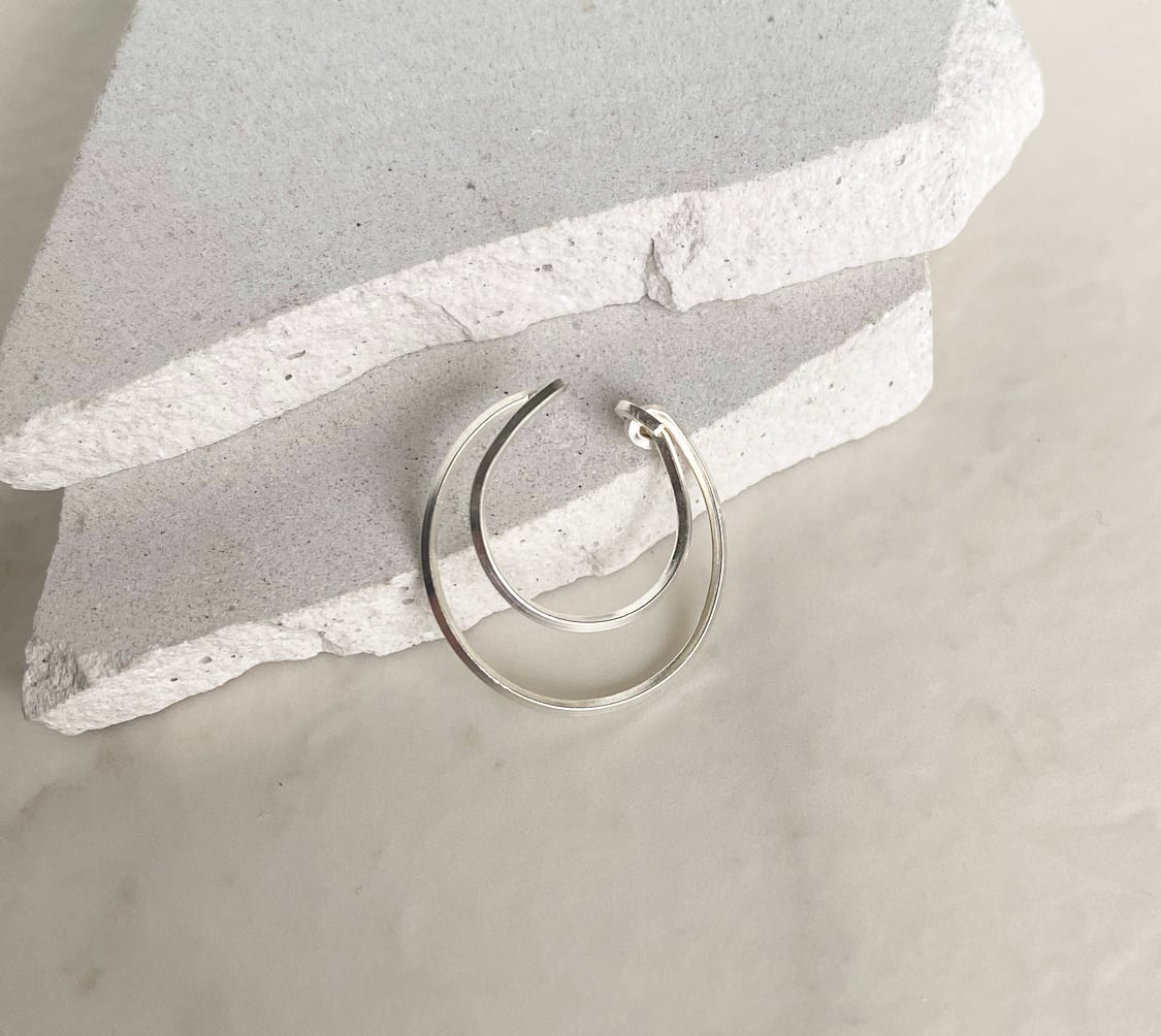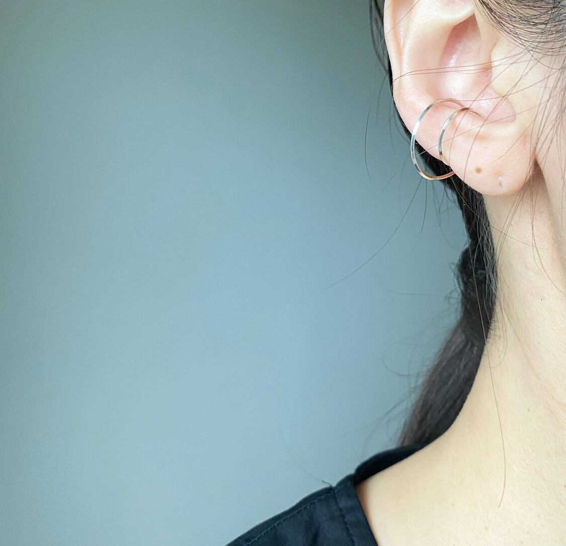 大きさの異なる2つのフープが耳元を彩るイヤーカフ。