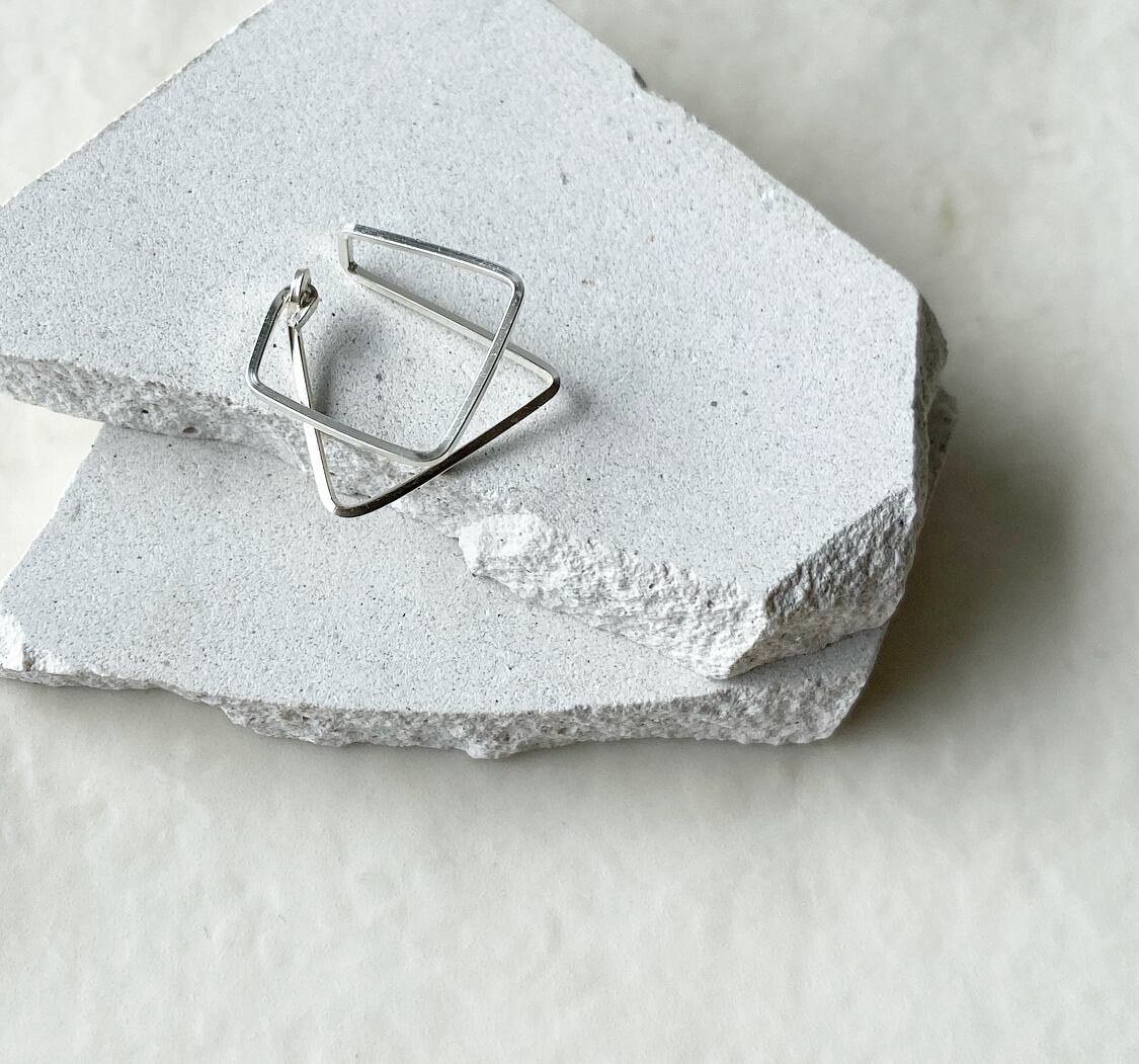 三角形のラインと四角形のラインが重なる直線的なイヤーカフです。
