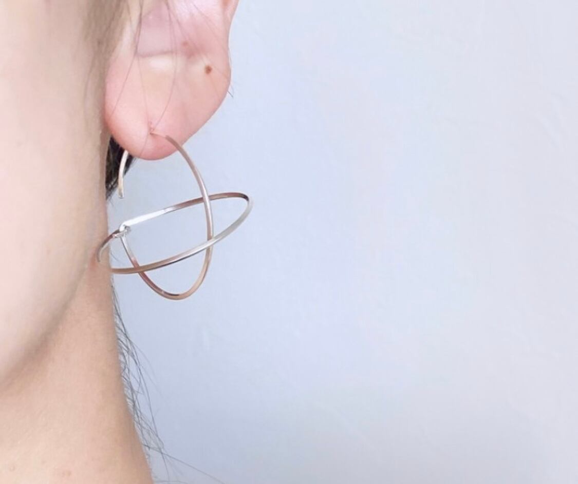 2つのフープが重なり、立体感を楽しめるフープピアス。
