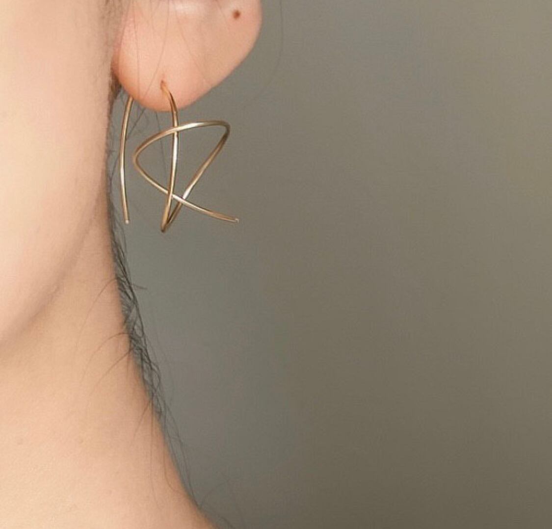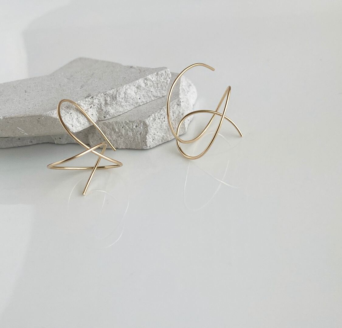 結び目を作るときの一瞬を切り取ったようなイメージのオブジェのようなフープピアス 。