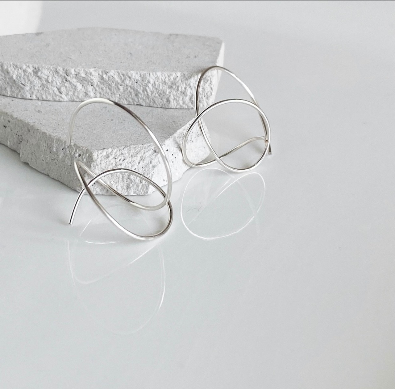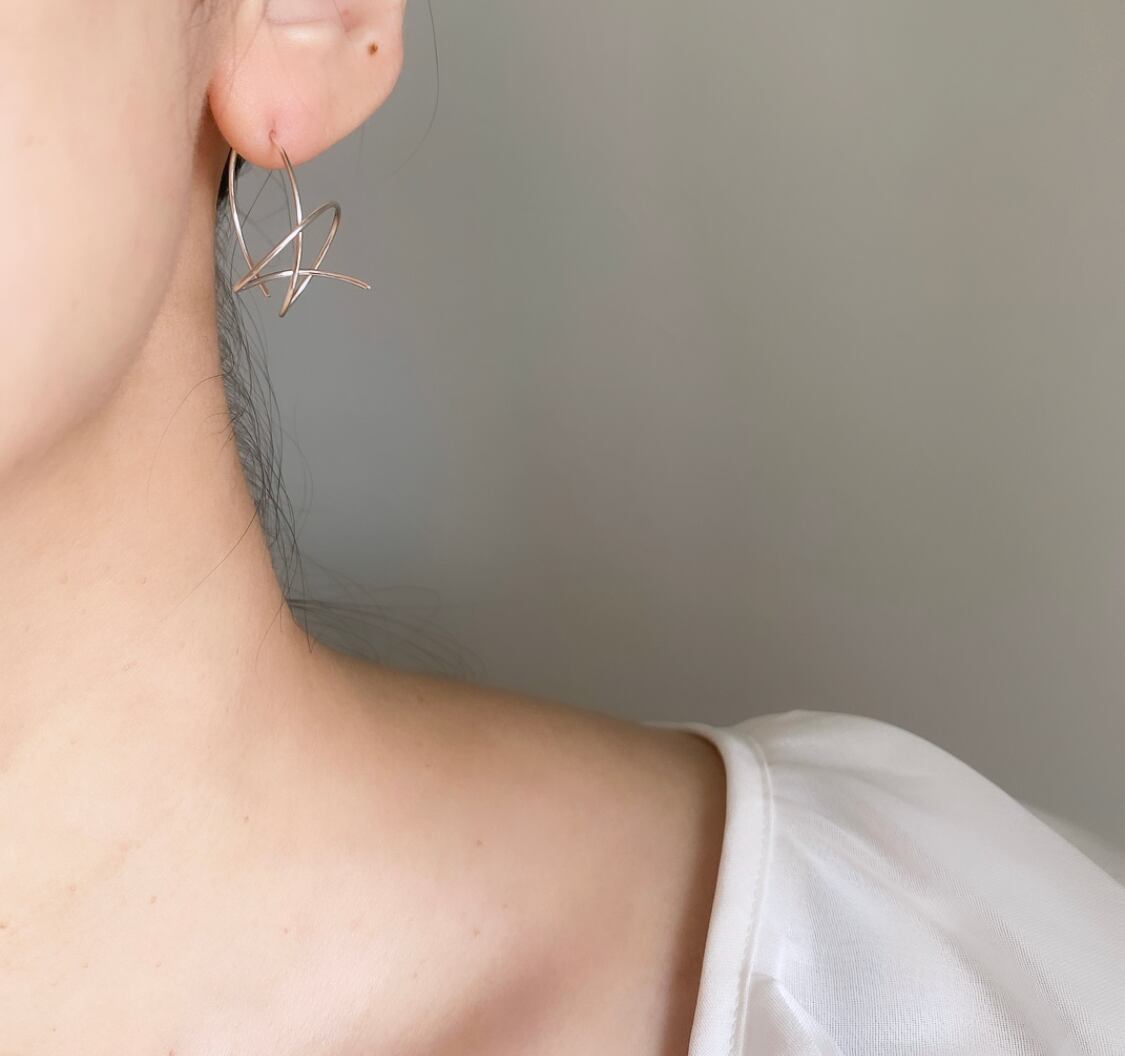 結び目を作るときの一瞬を切り取ったようなイメージのオブジェのようなフープピアス 。