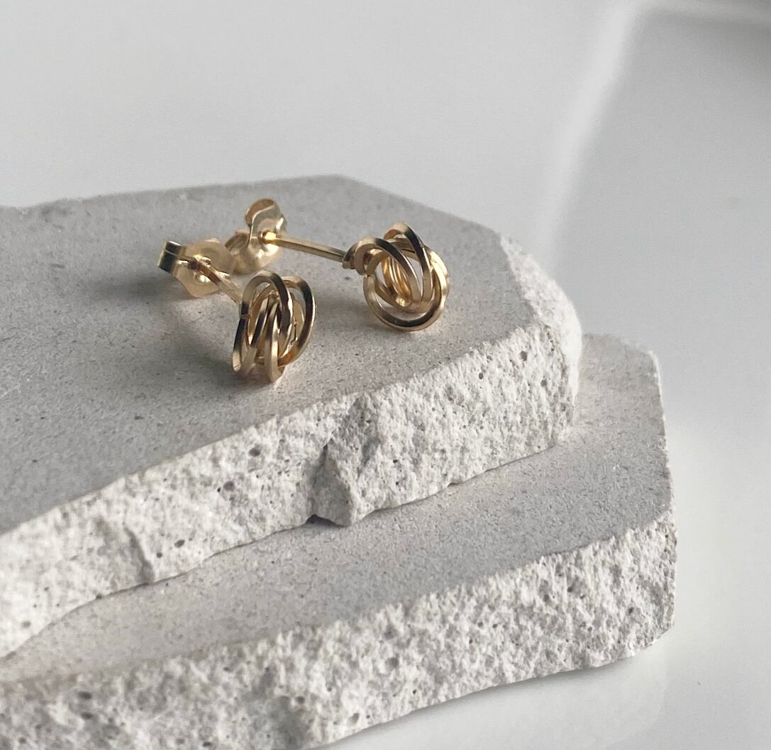 5ミリほどの小さなフープが4つ重なり、球体のようにまとまったスキンピアス。