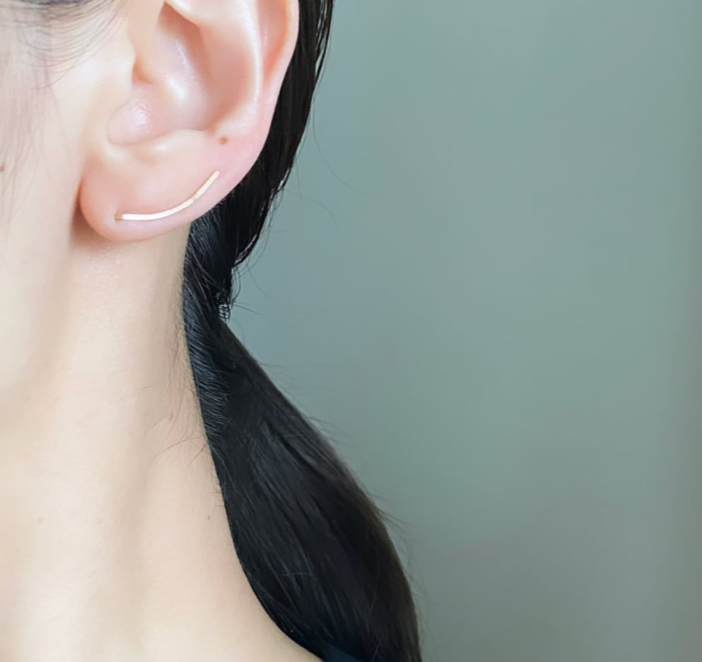 ピアスホールのある方は、ピアスホールに挿してから90度回転させて頂き装着することができ、ピアスホールの無い方は耳たぶを挟んでお召しいただけます。