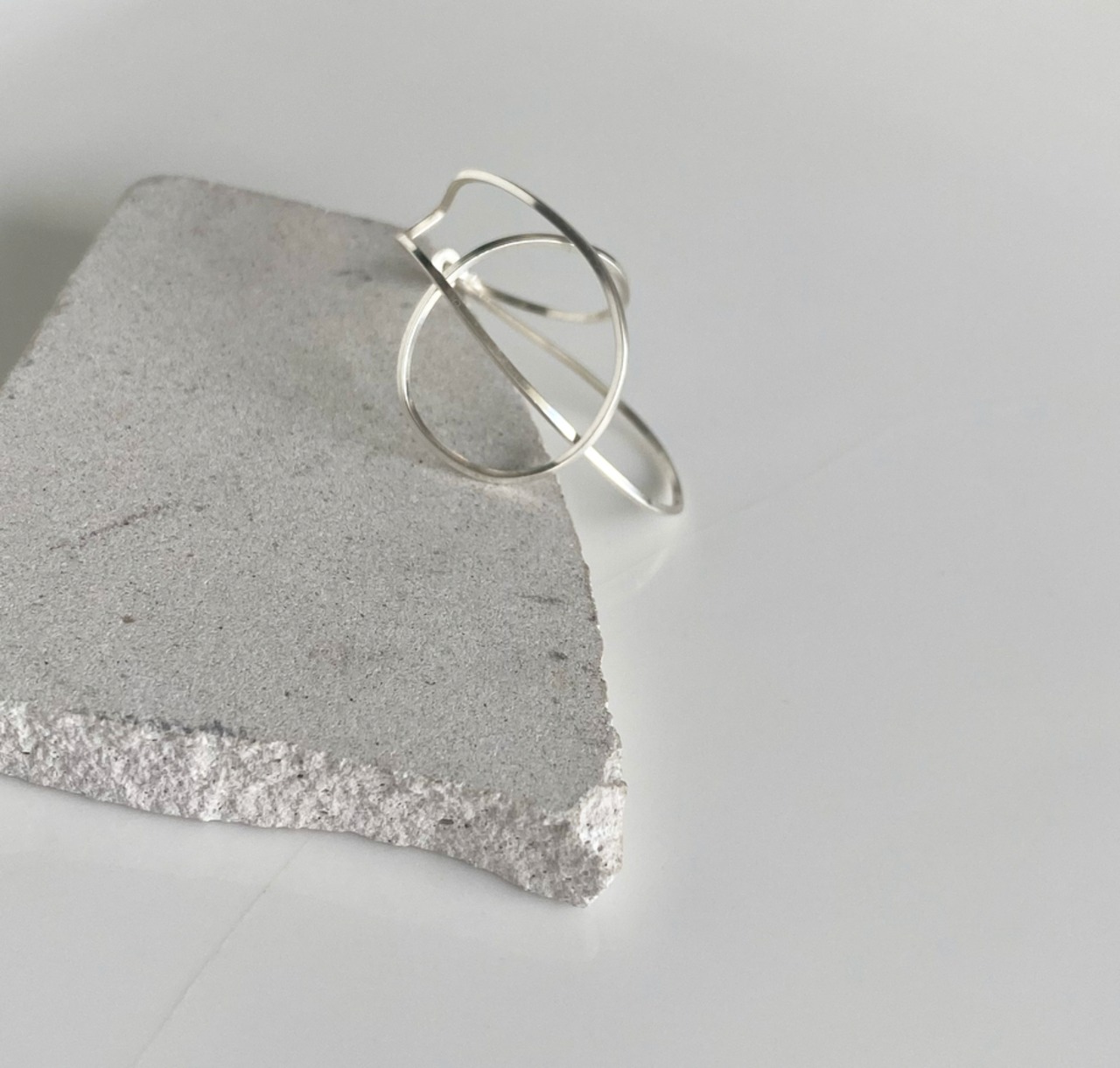 スクエアワイヤーの面が光を反射し、シンプルながらもキラッと目を引きます。