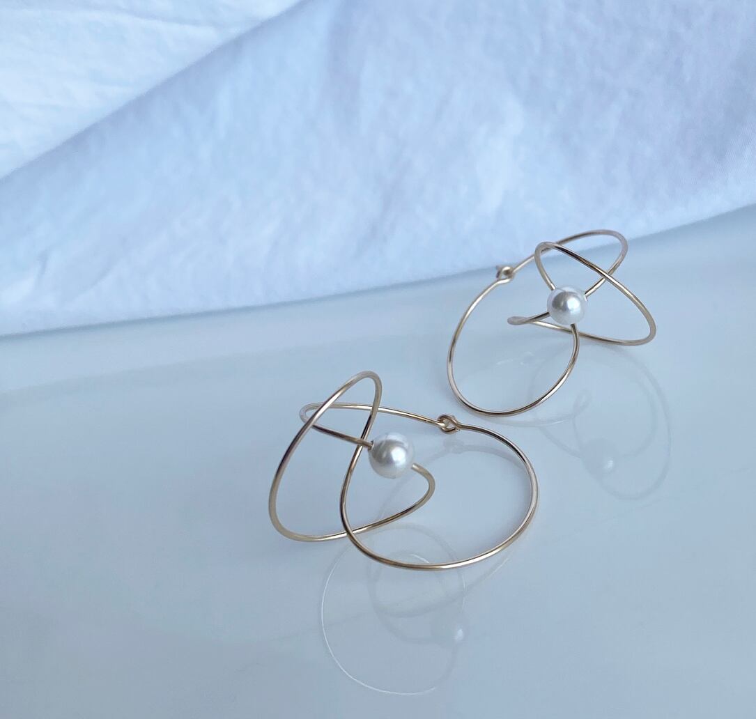 14kgf Satellite フープ パール ピアス