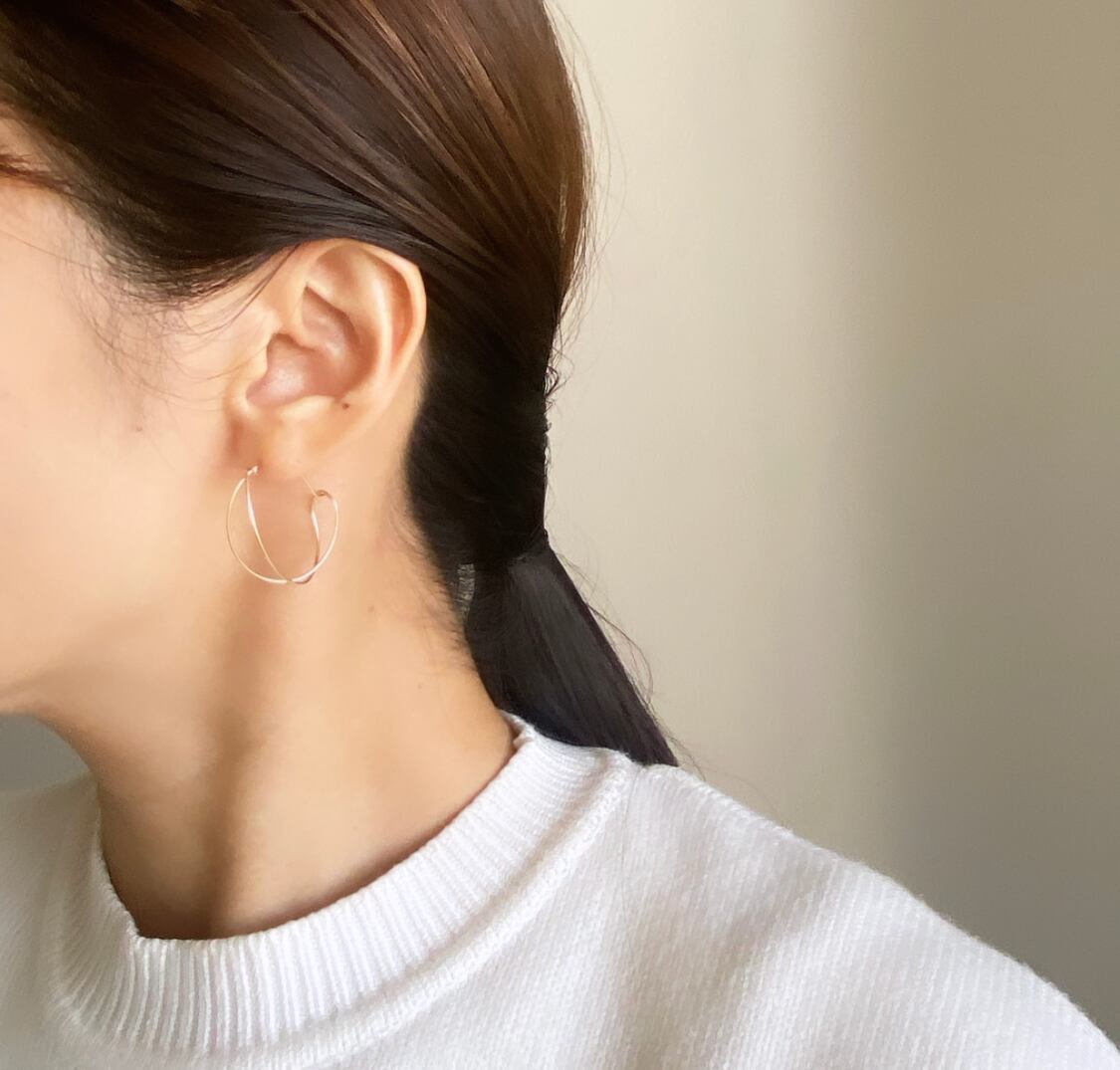 シンプルでありながらも実用性とデザイン性を兼ね備えていて、どのようなスタイルにも合わせやすいピアス 。