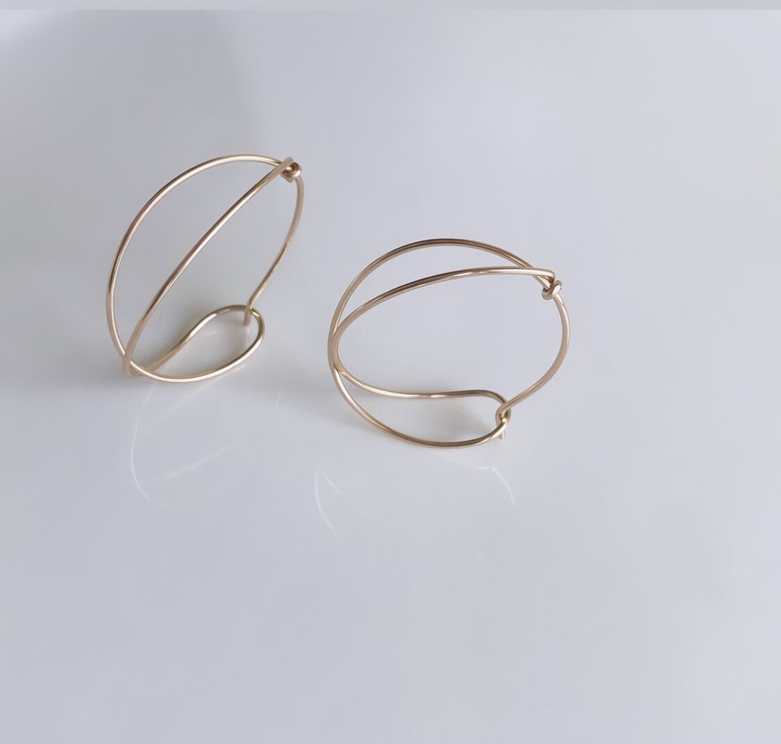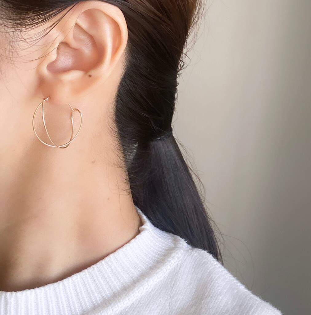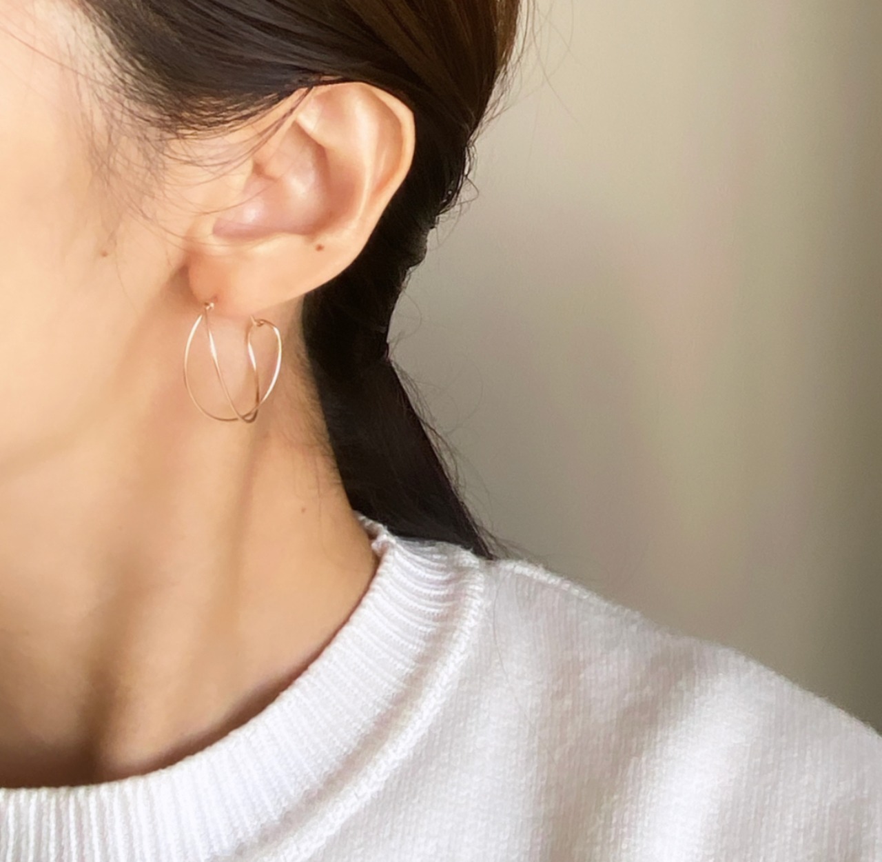 華奢な曲線のラインが美しいオーバルのフープピアス。