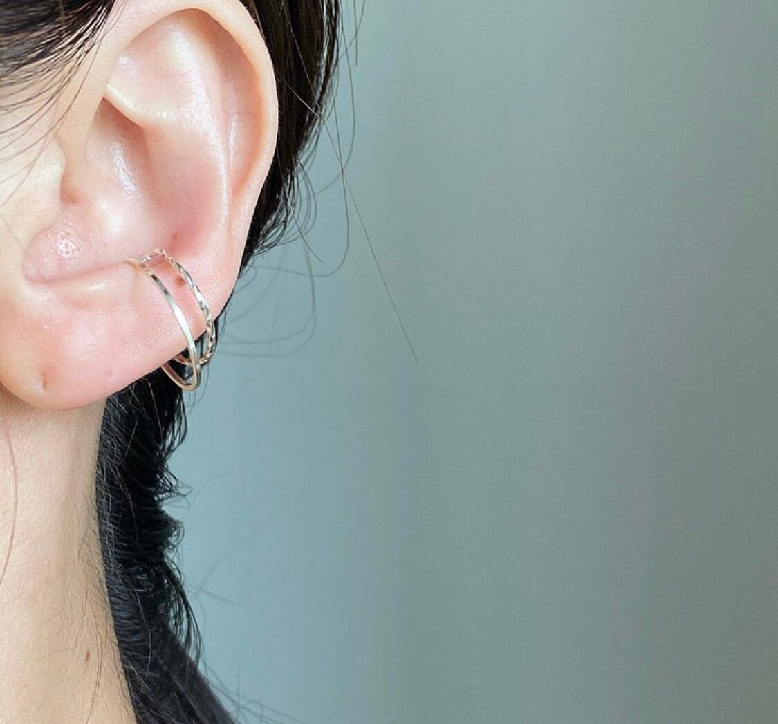 大きさの異なる2つのフープが耳元を彩るイヤーカフ。