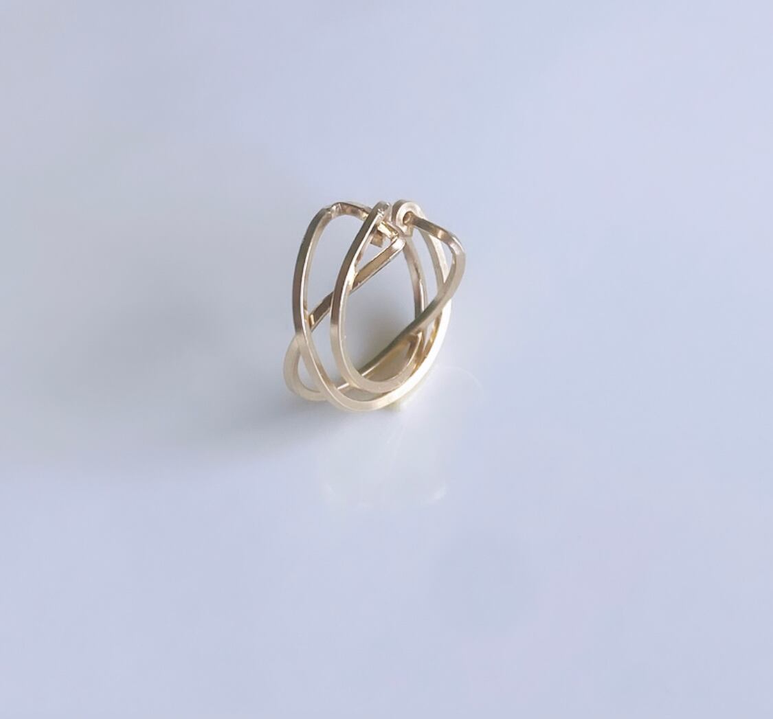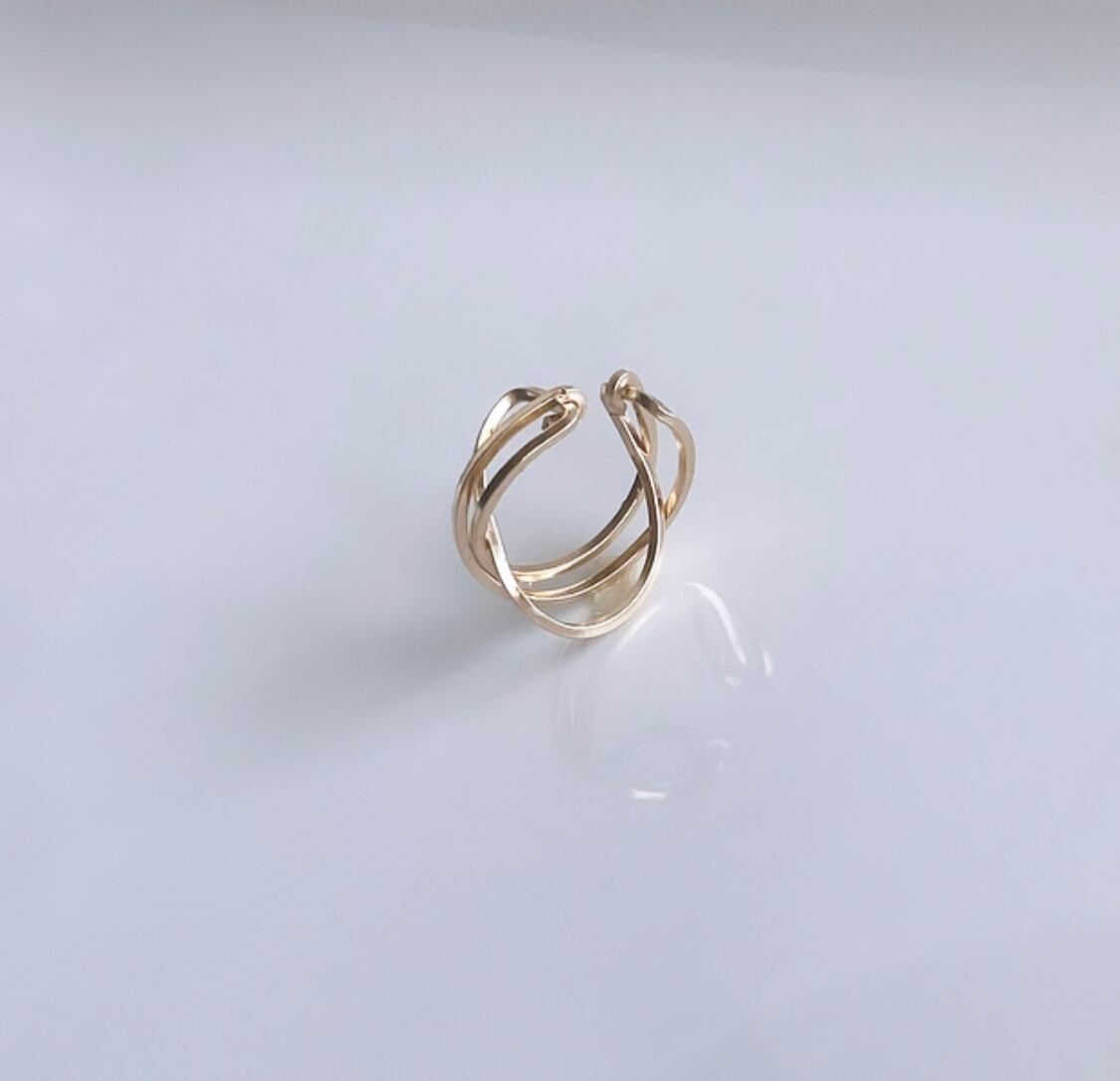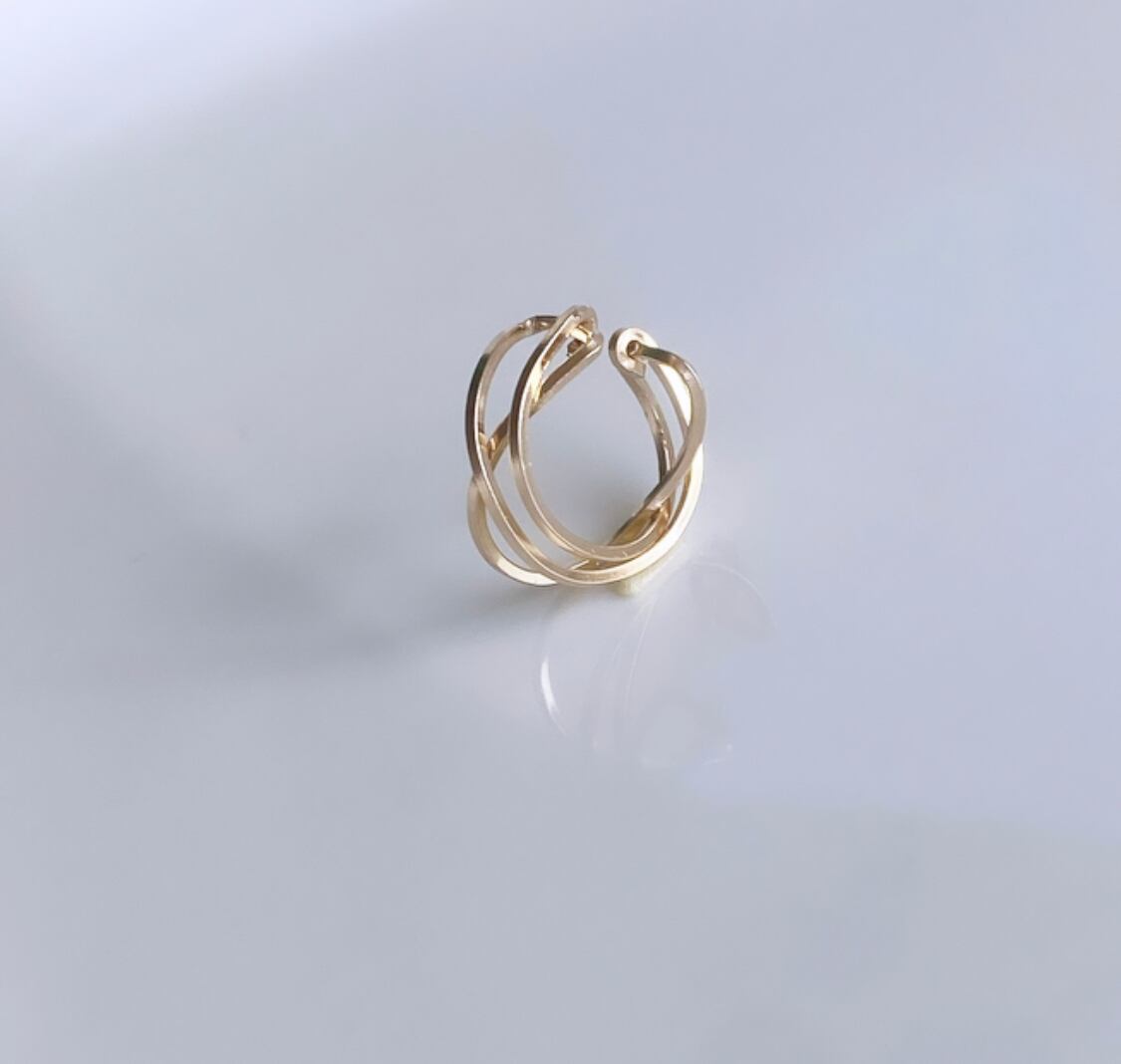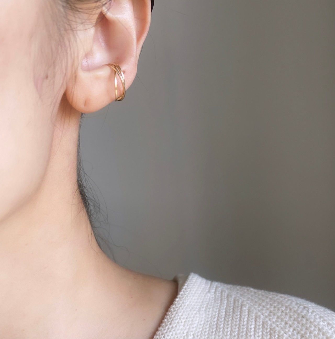 斜めのラインが重なりあった3連のようなイヤーカフ。