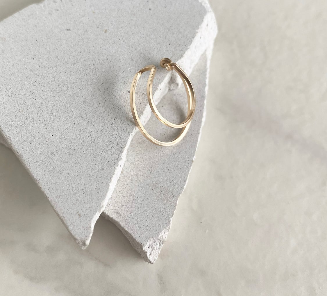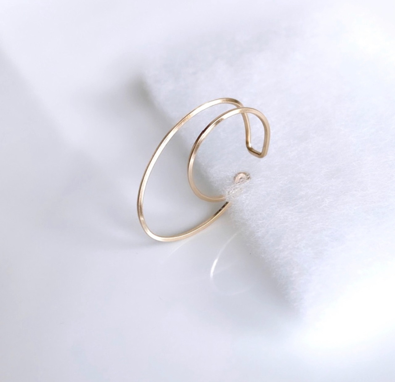 大きさの異なる2つのフープが耳元を彩るイヤーカフ。