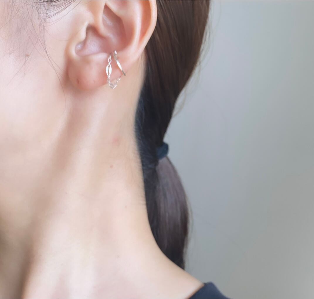 単体でシンプルにお召しいただくのはもちろん、お手持ちのアクセサリーとの組み合わせもお楽しみ頂きやすいイヤカフです。