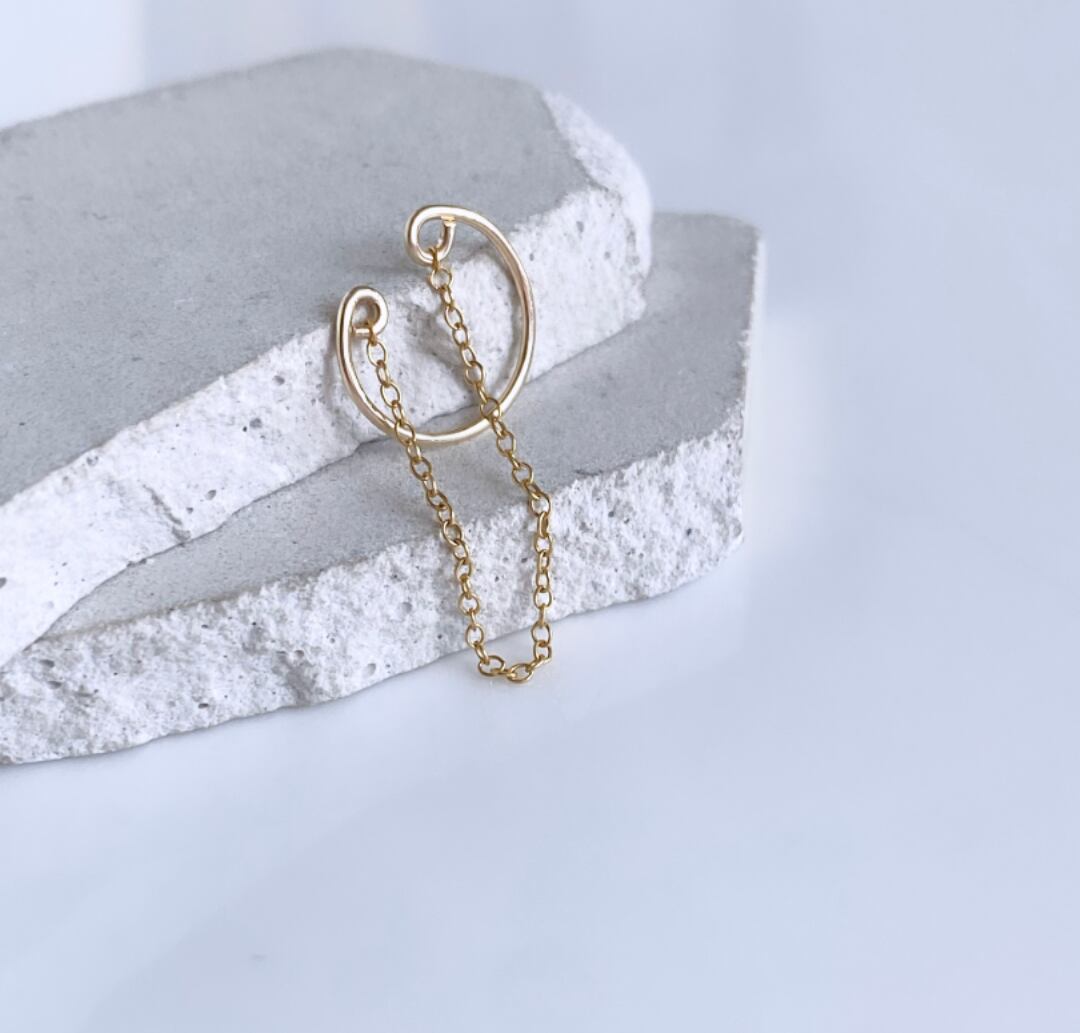繊細なチェーンと華奢なフープのイヤーカフ。