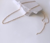 ラリエットのようにY字が正面に来るようにお召し頂いたり、クルーネックに沿わせるように短めに留めて背中にチェーンを垂らして頂くのも素敵で印象的な後ろ姿を演出できます。