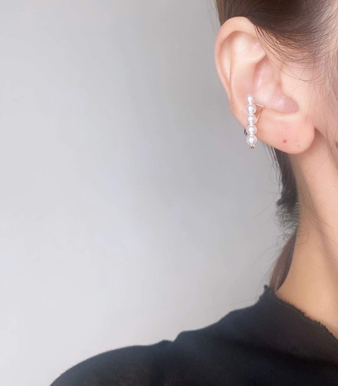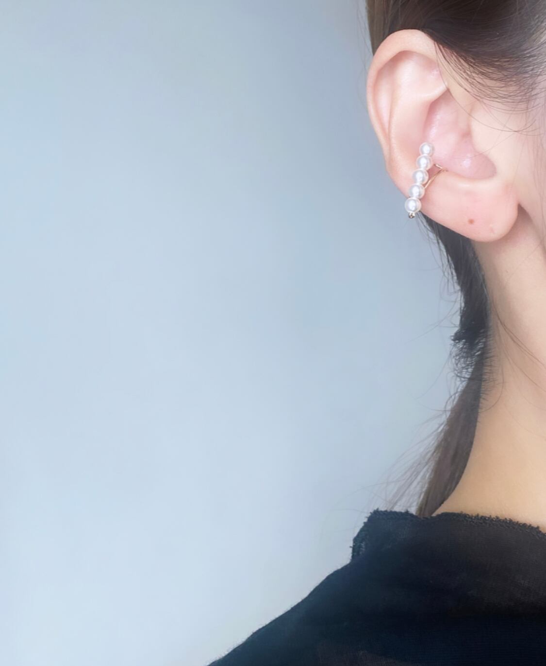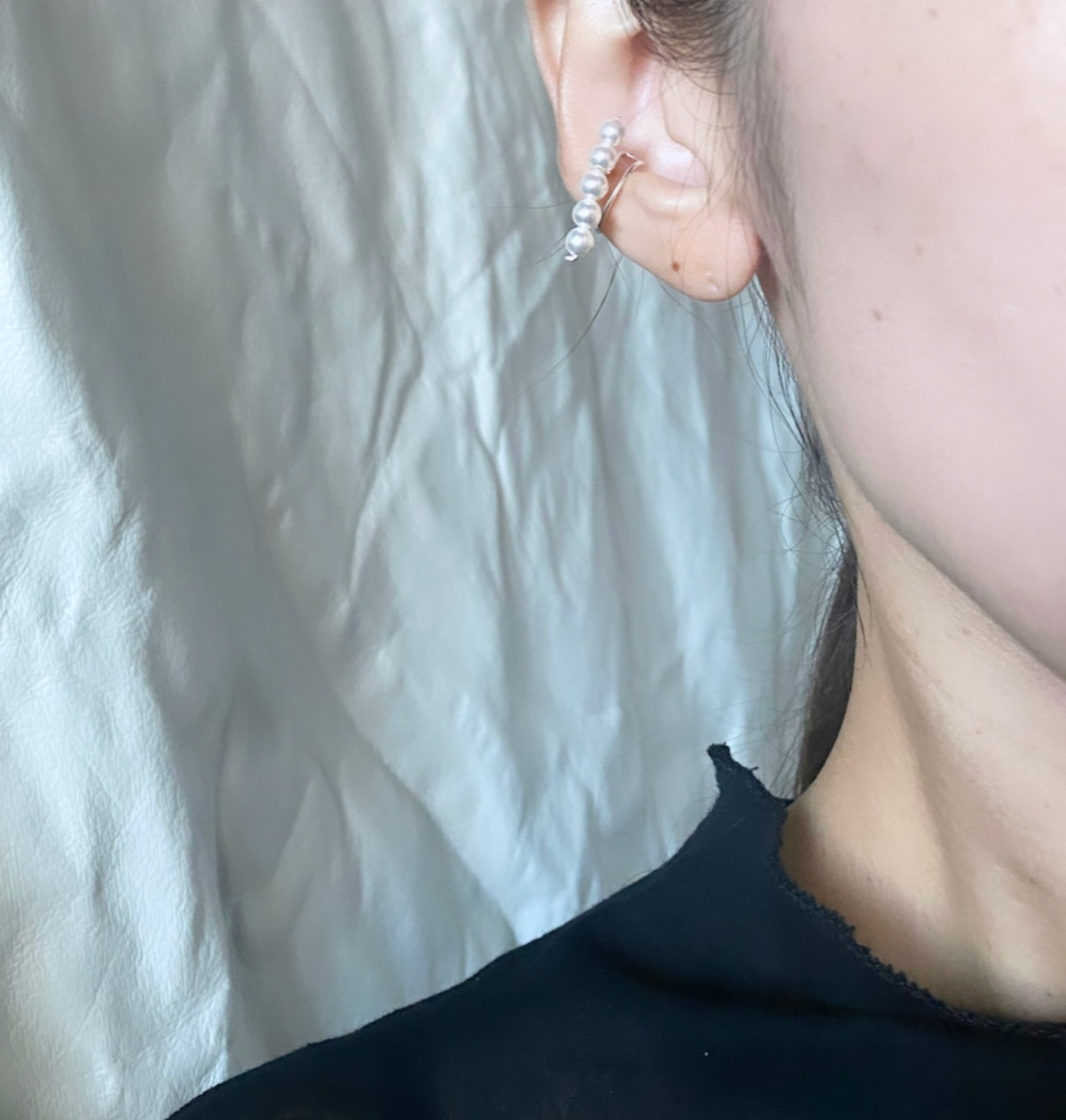 4ミリパールが5つまっすぐに並ぶイヤーカフを秋の新作。