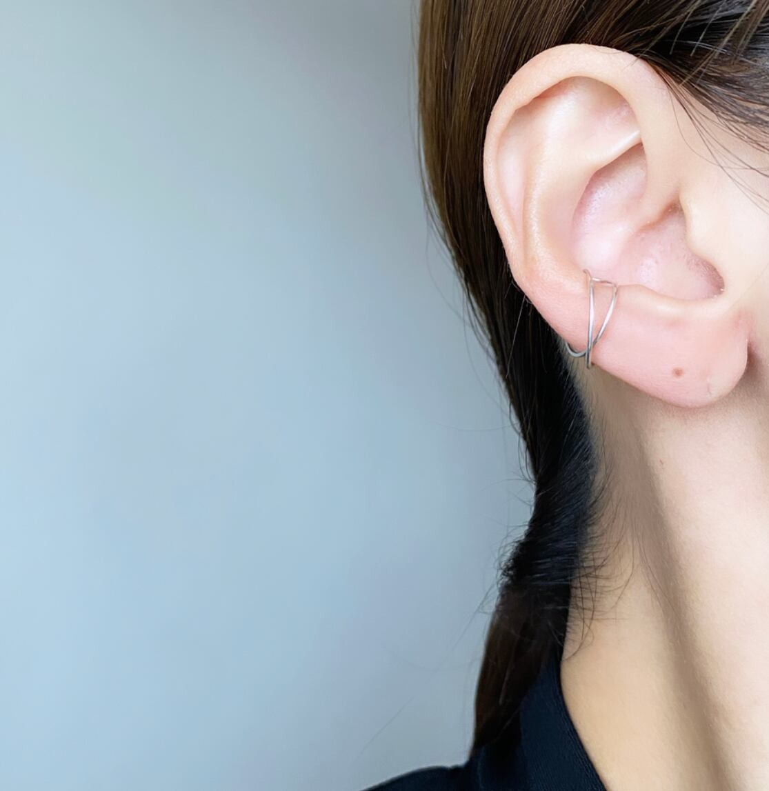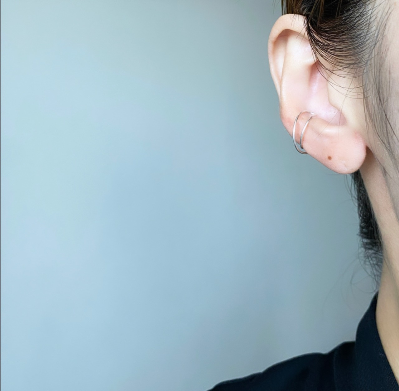 お耳の前できちんと並んで、浮かんでいるようなイヤーカフ。