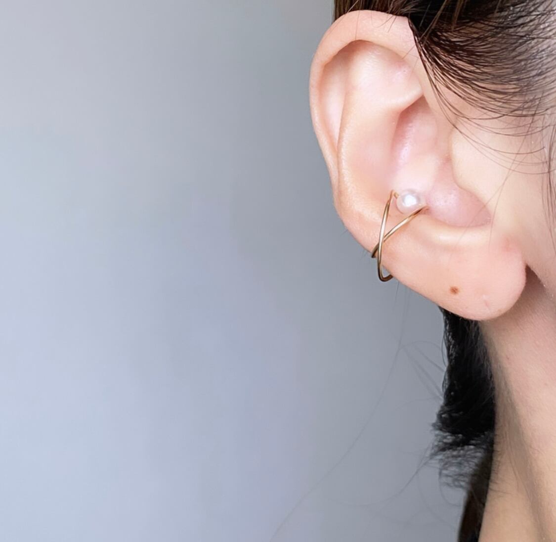 パールを後ろにしてお召しいただくとシンプルな華奢なラインが綺麗なイヤーカフとしてお召しいただけます。