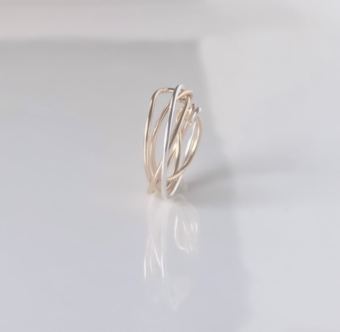 ゴールド3本とシルバー1本のバイカラーで奥行きある印象に。