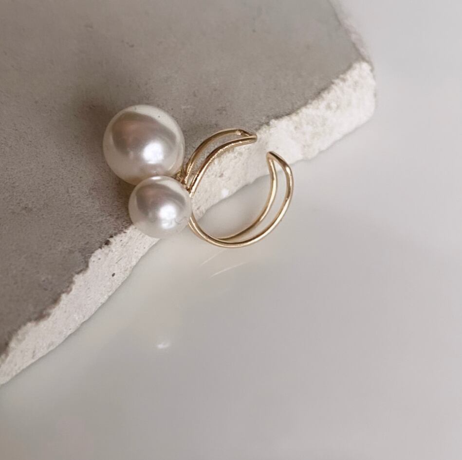 8ミリと6ミリのパールが並ぶ可愛らしさのあるイヤーカフ。