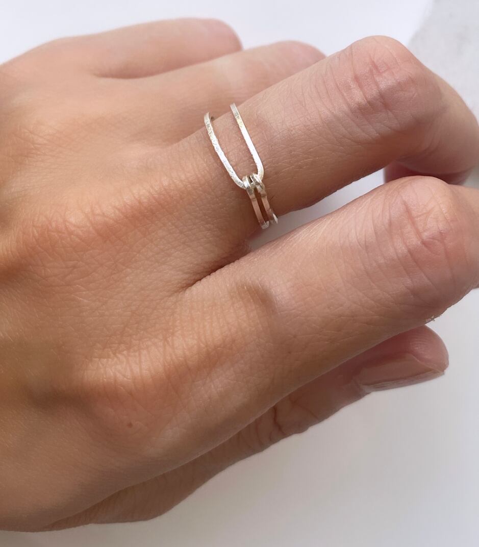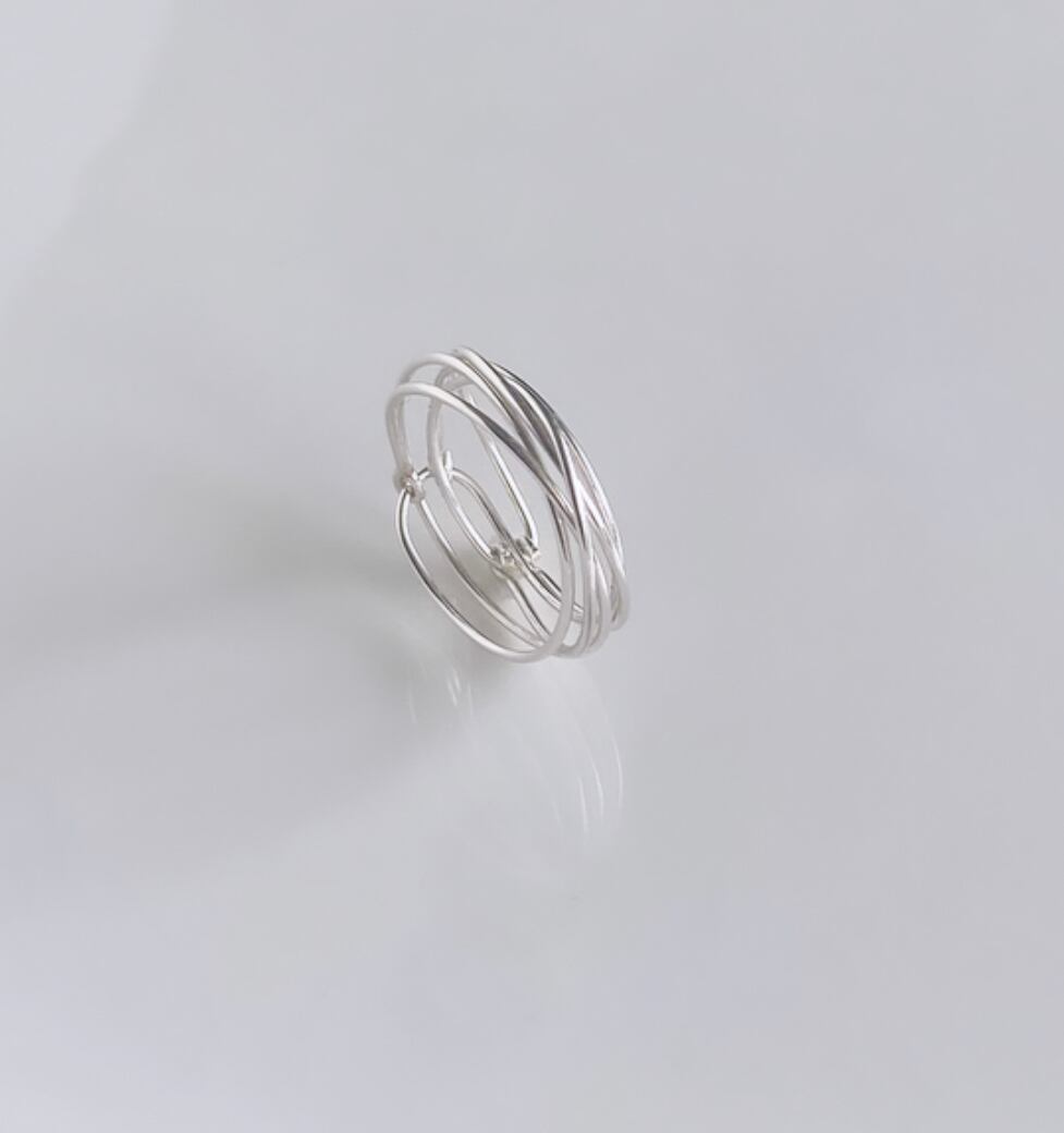 の大きさが微妙にそれぞれ異なるので指とリングの間に空間があるところもあり、立体感が魅力の指輪です。