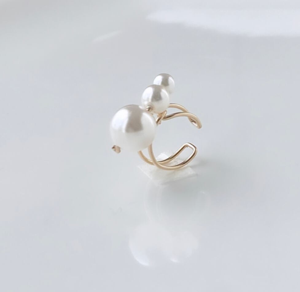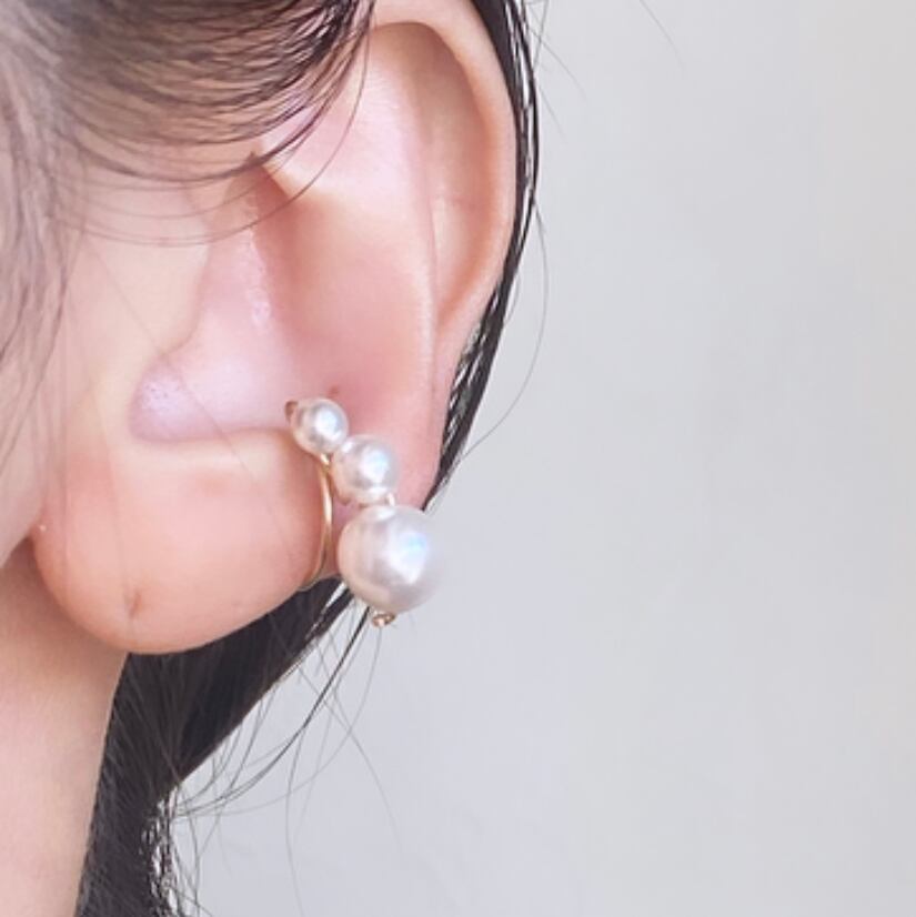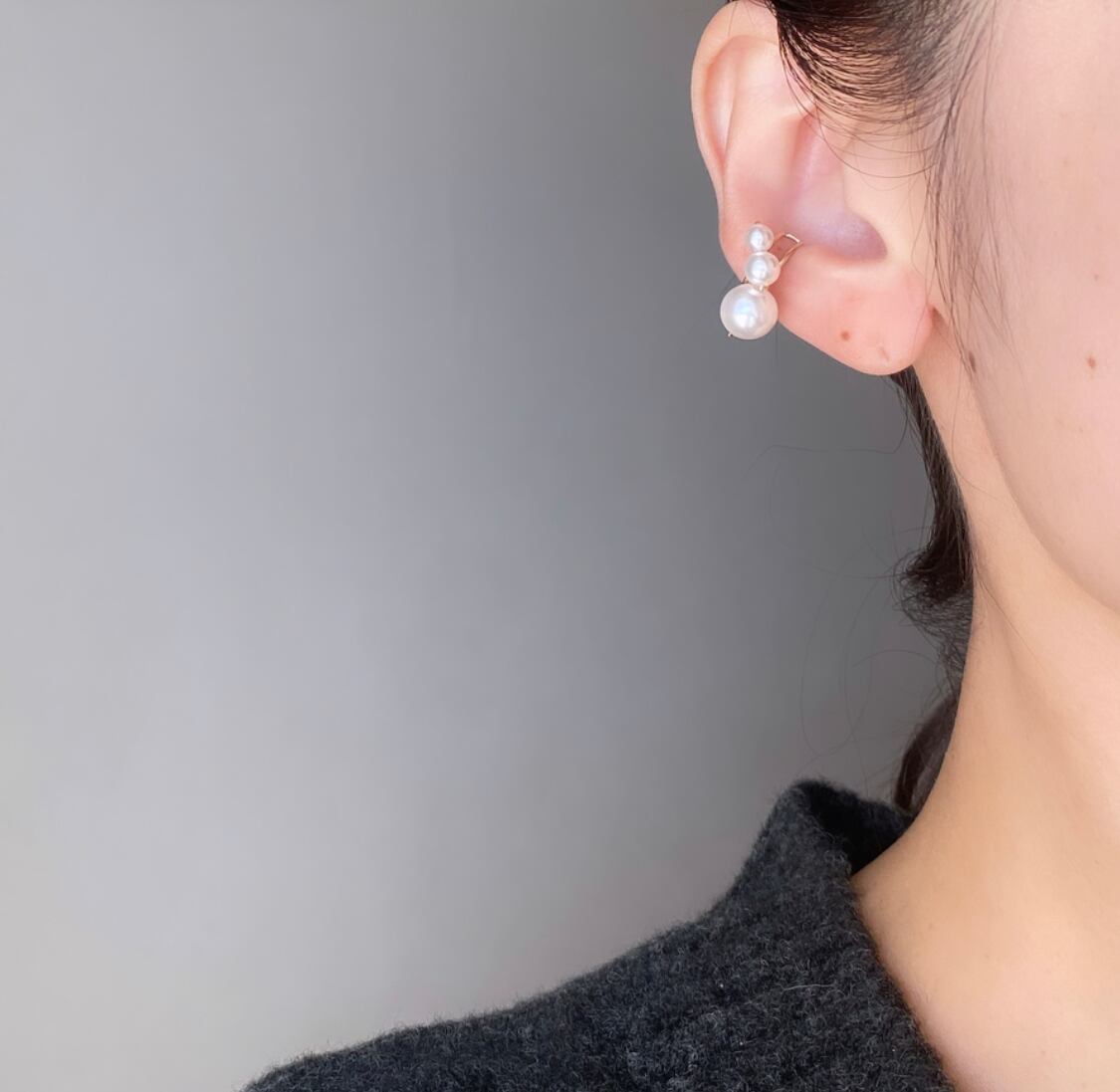 8mm、5mm、 4mmのパールが弧を描くように並ぶイヤーカフ。