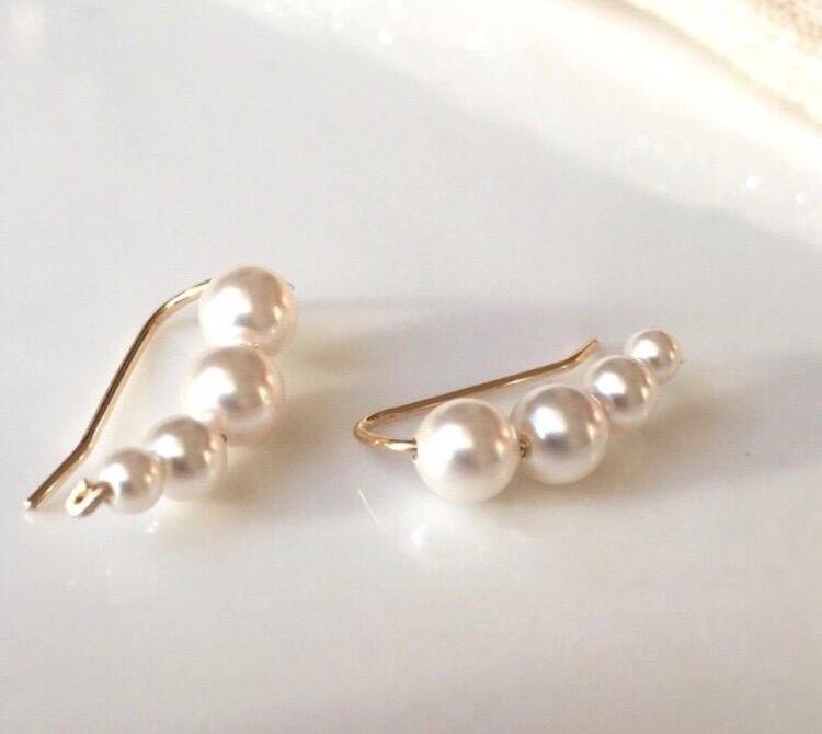 シンプルながらも、サイズが違うパールを使用し緩やかに弧を描くことでこなれ感のある、ちょっと目を引く可愛さです。