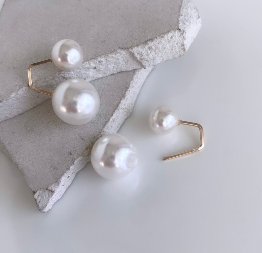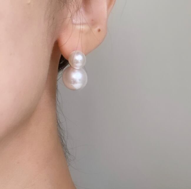 6ミリパールの下に12ミリのパールが浮かんでいるようなピアス。