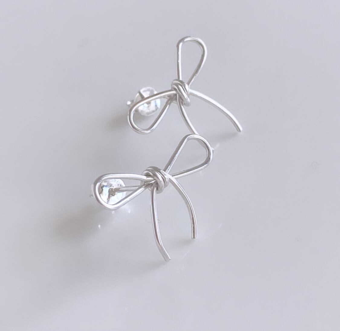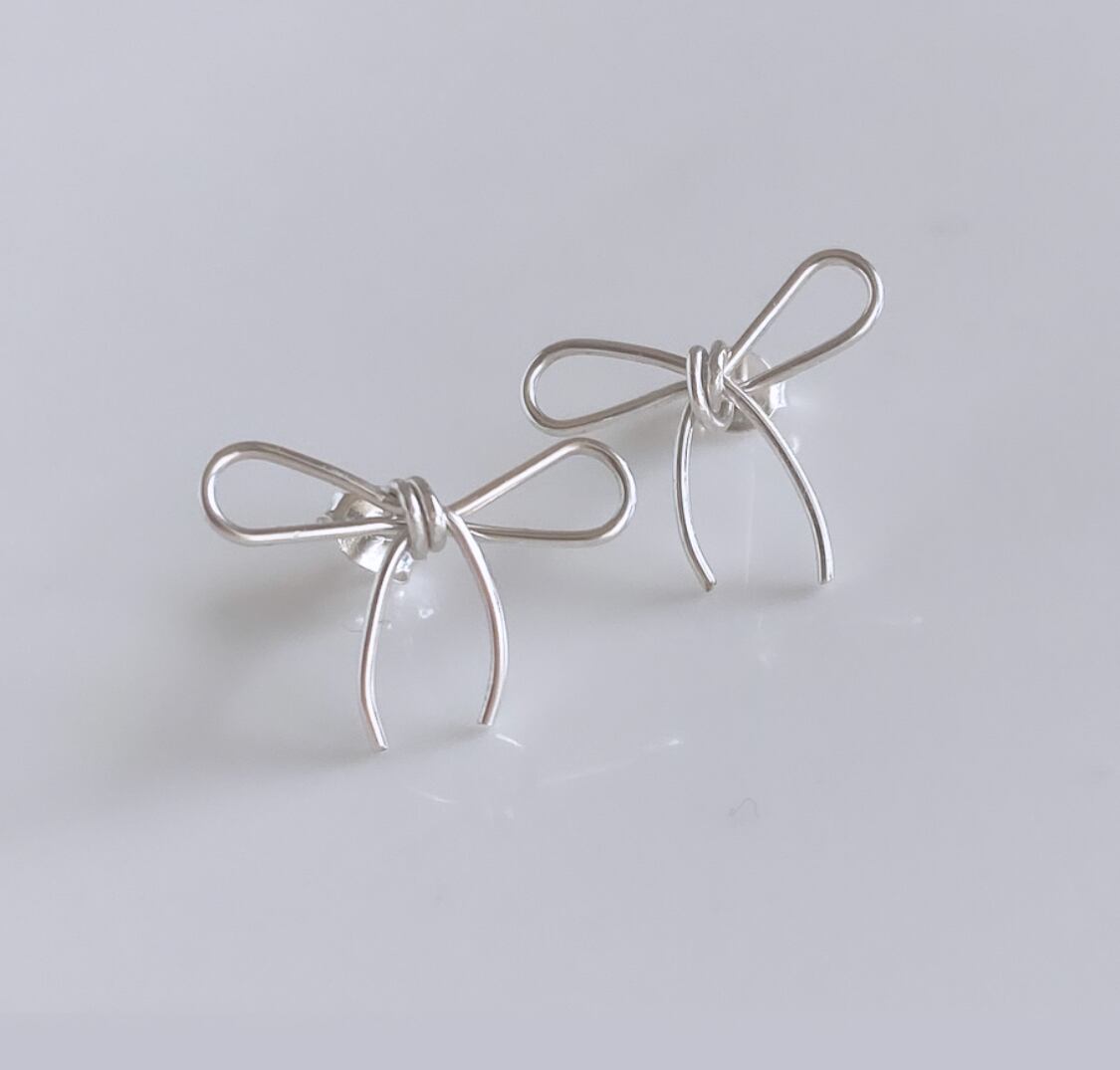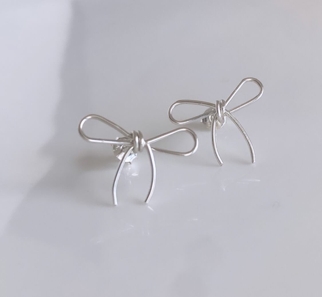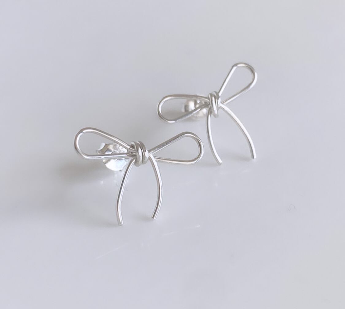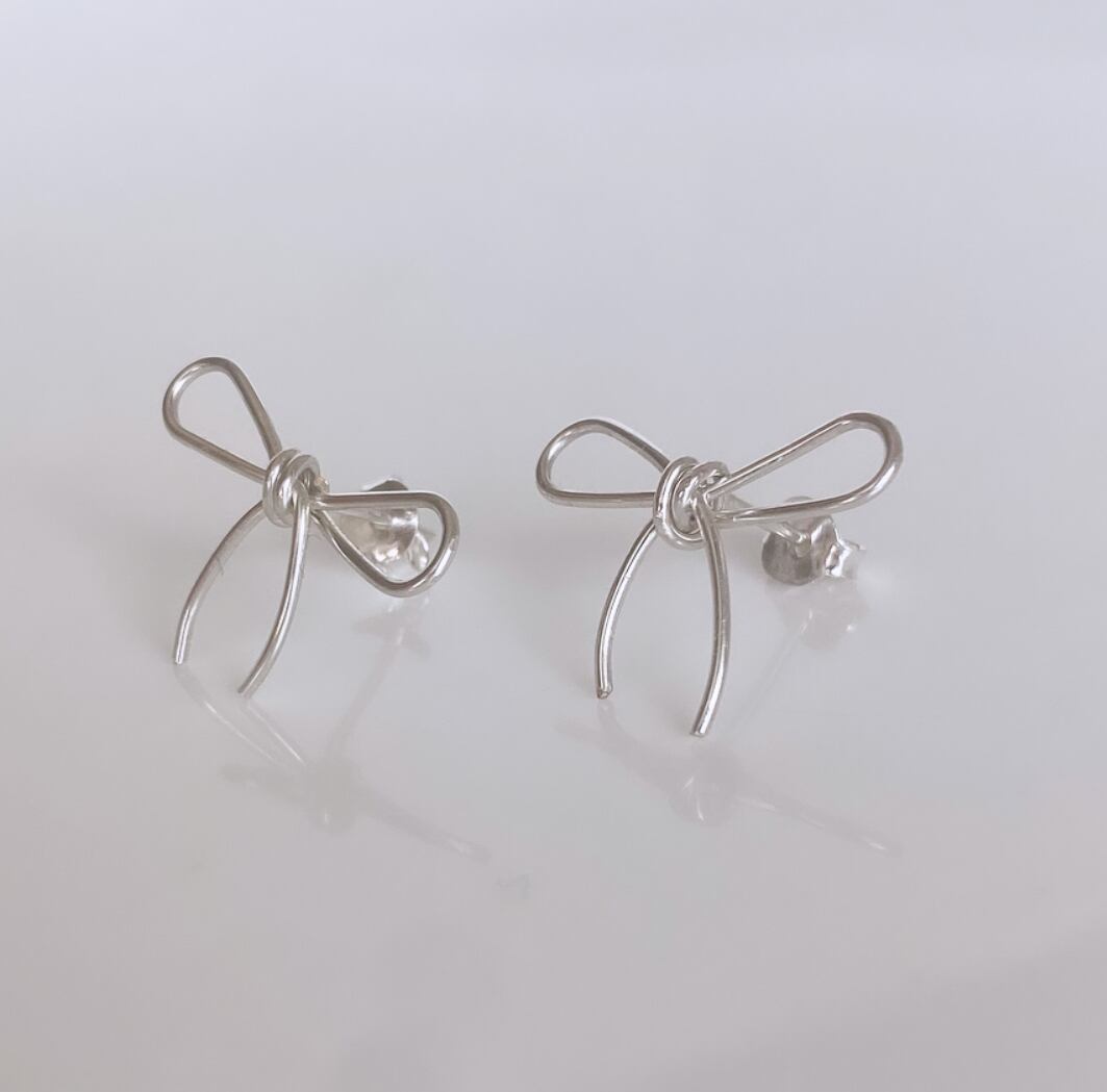 華奢なラインでリボンのピアス。