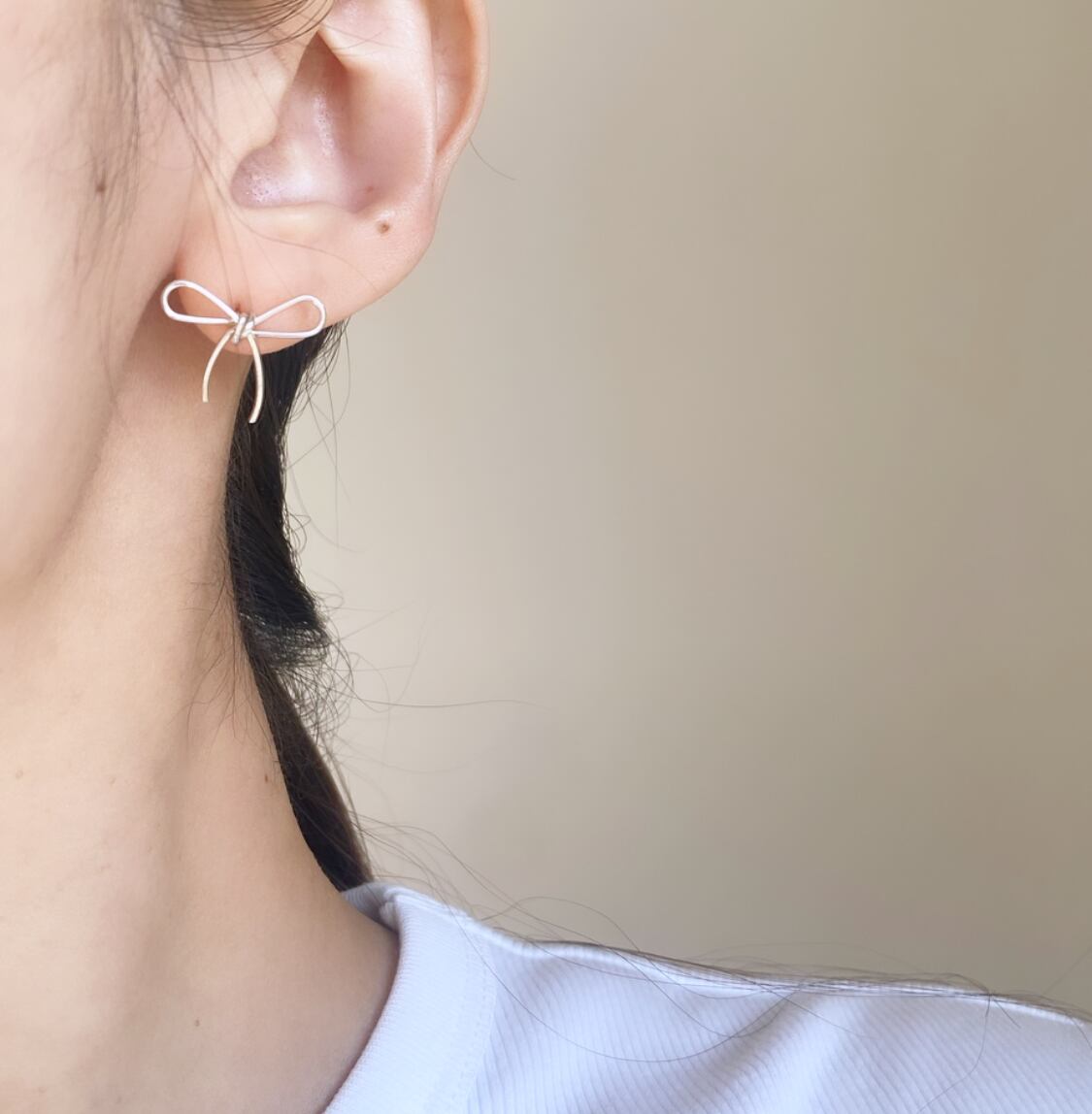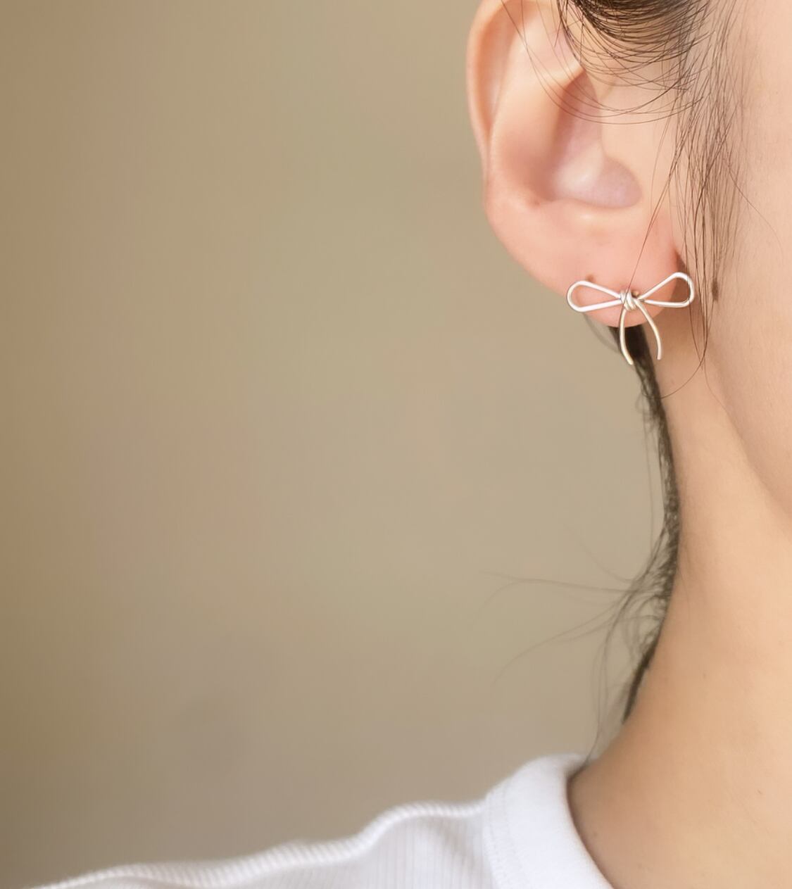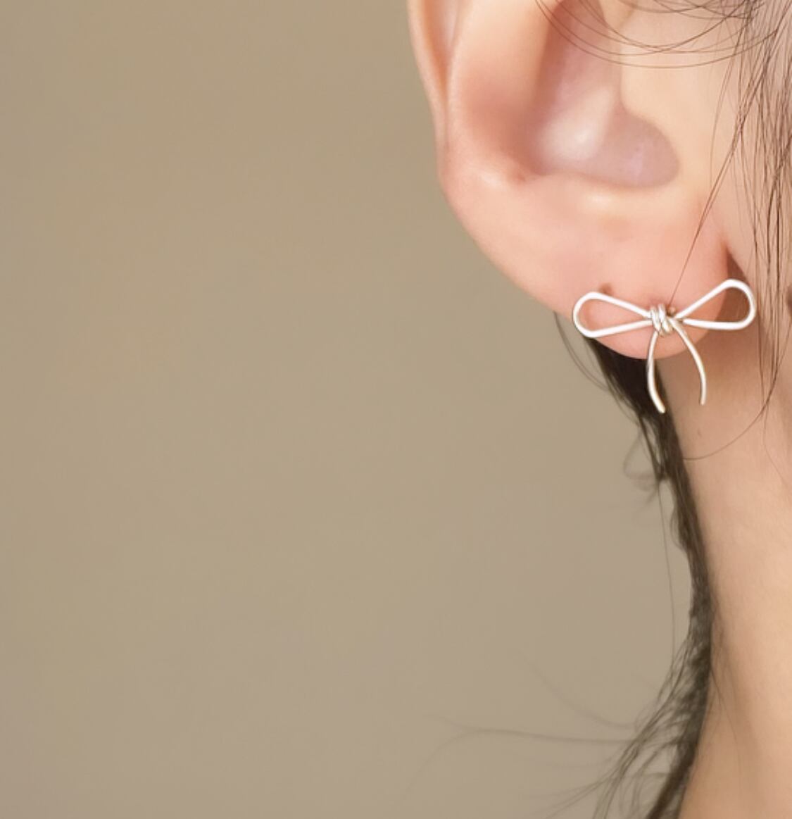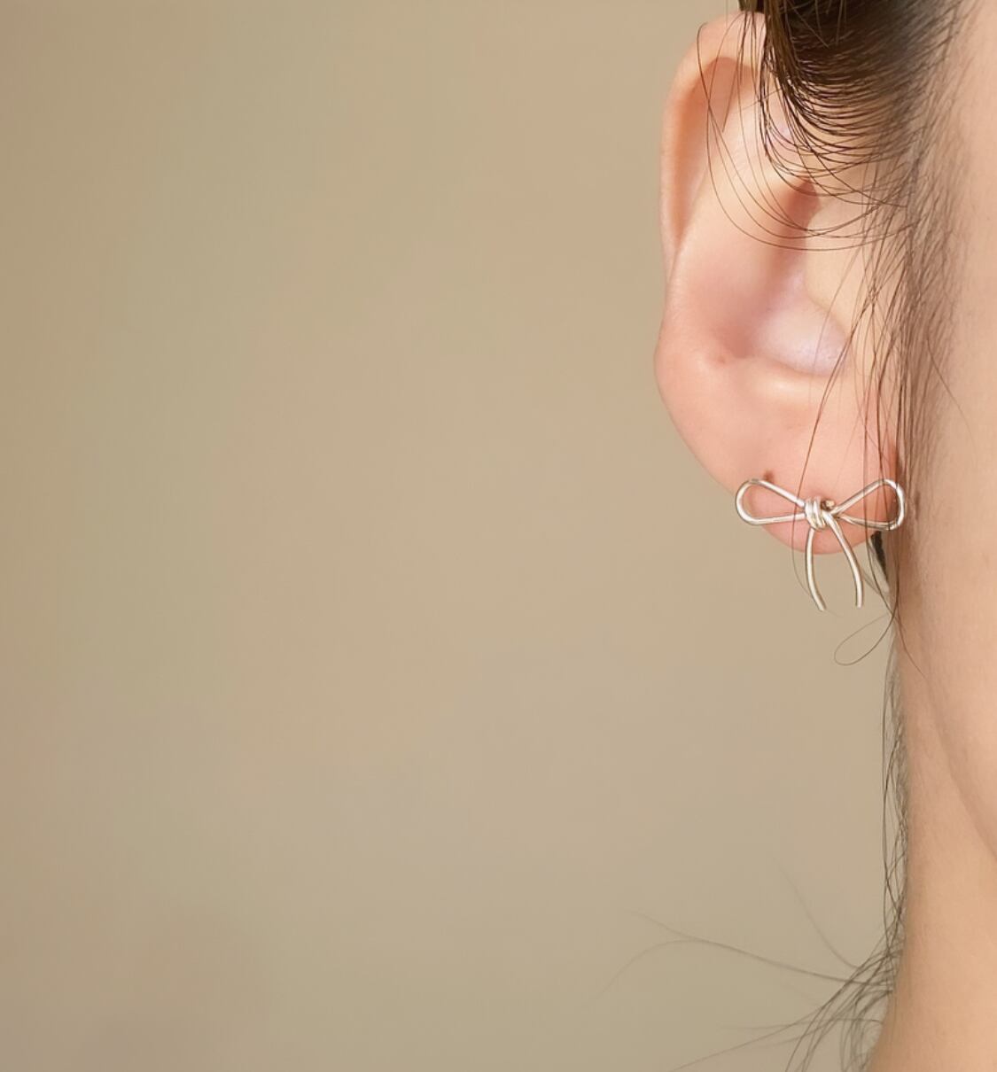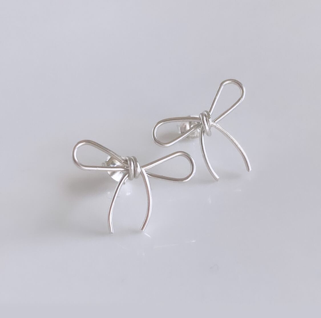 華奢なラインでリボンのピアス。