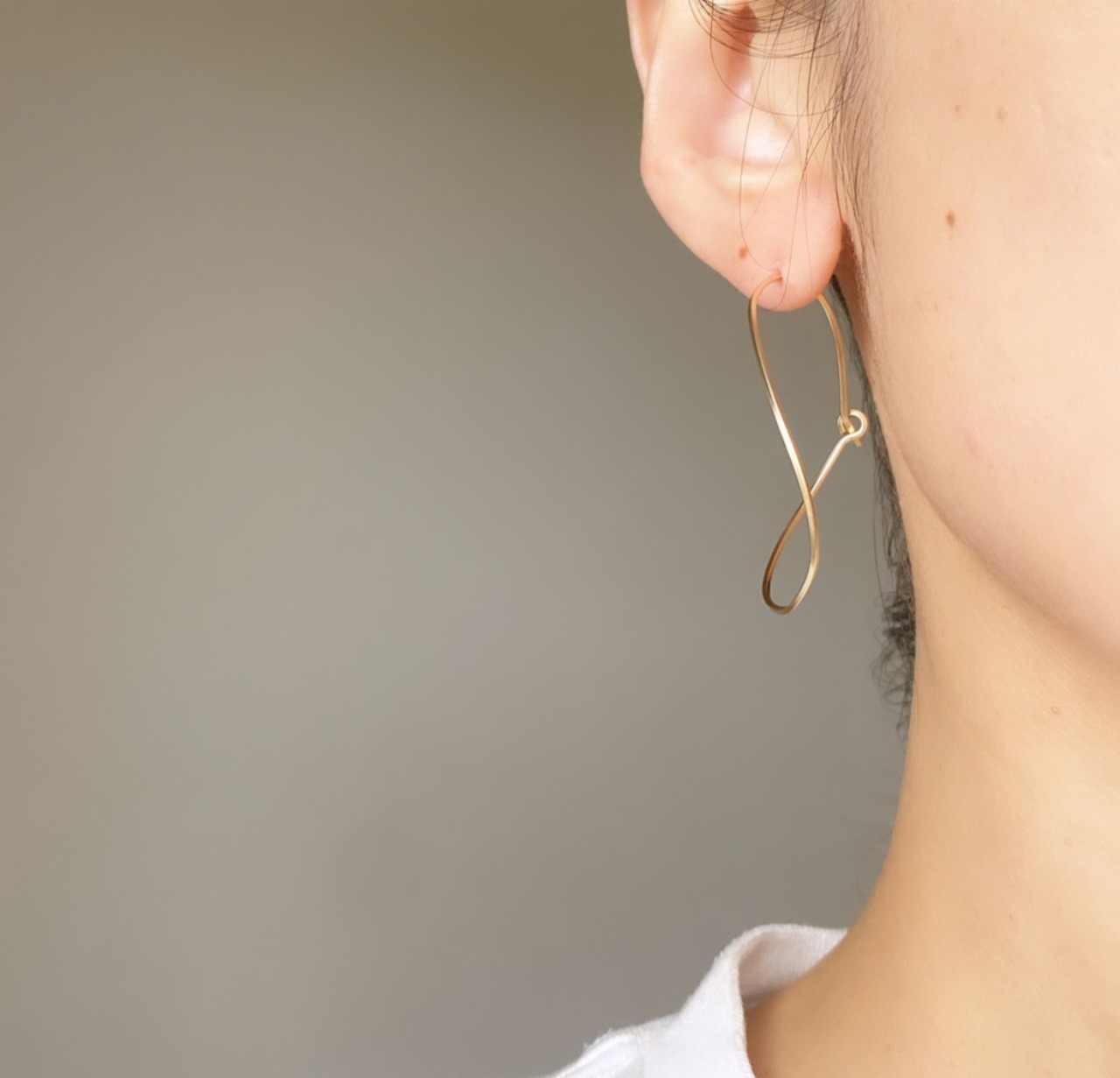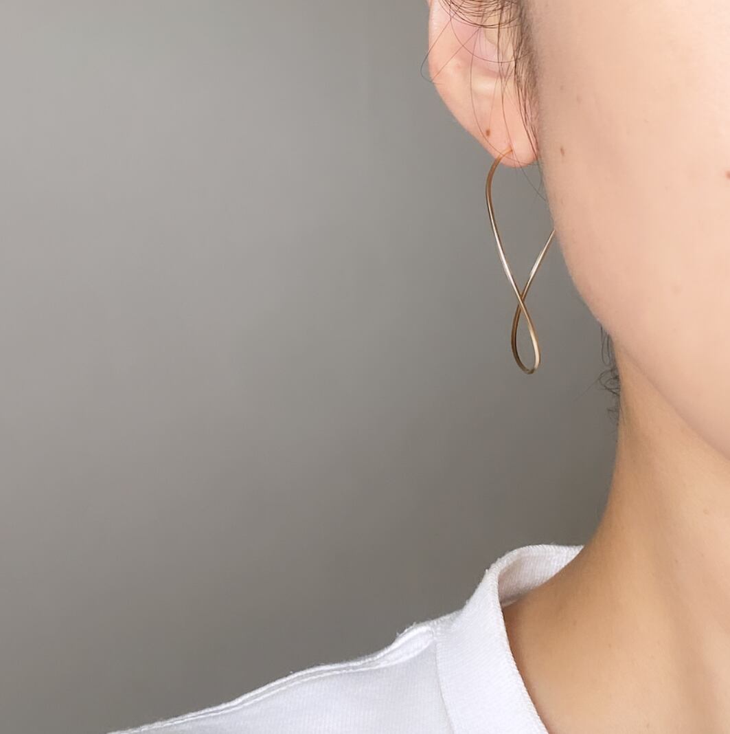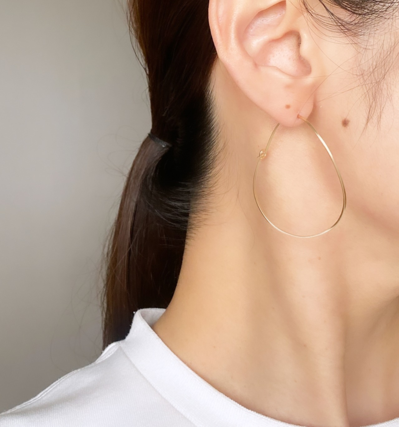 動きによって生まれる光の反射やピアスの揺れが視線を集める、華奢ながらも存在感のあるフープピアス。