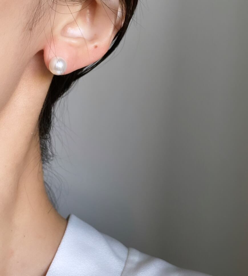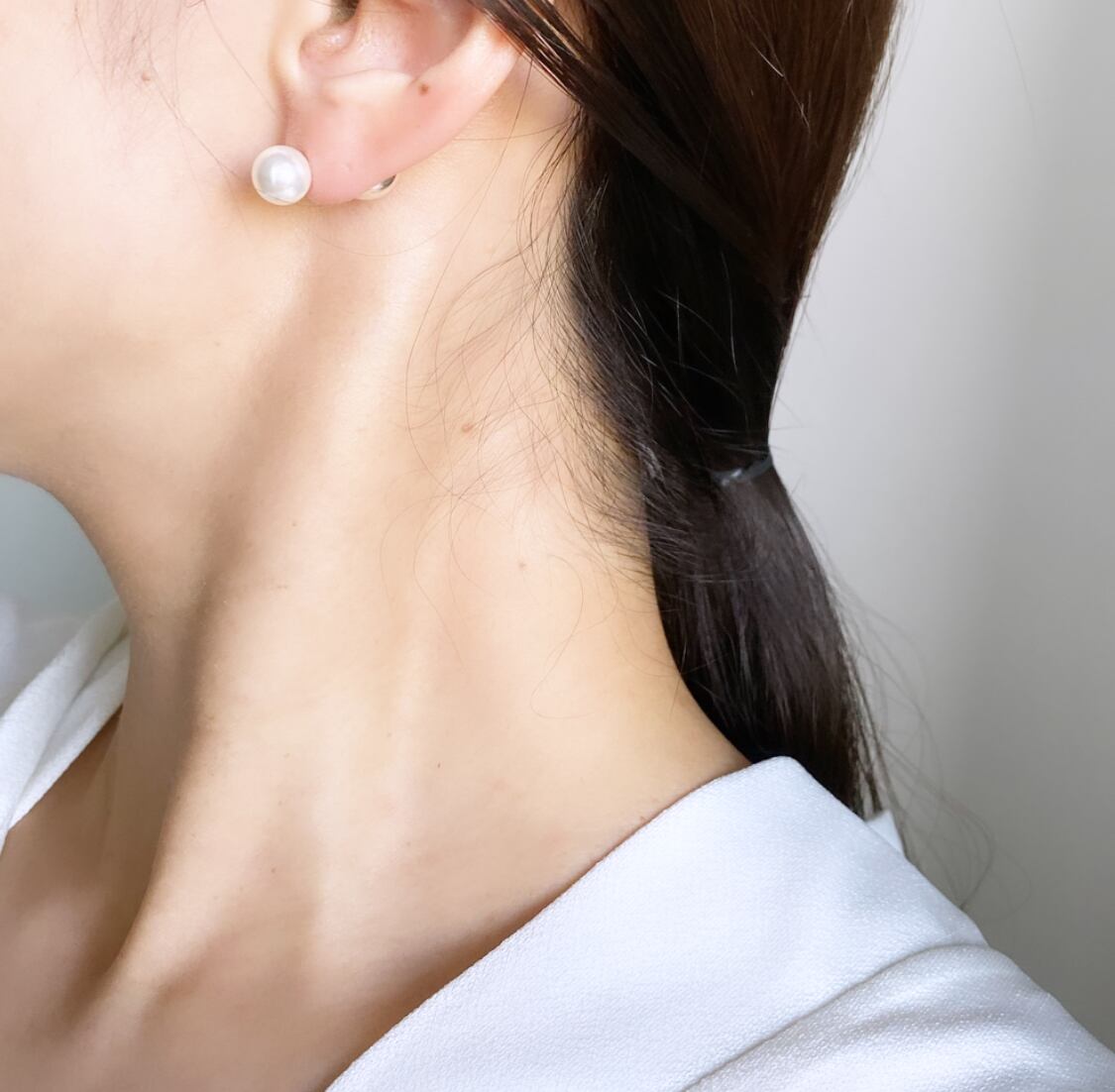 耳たぶ後ろにくる8mmパールもモダンな雰囲気を演出します。