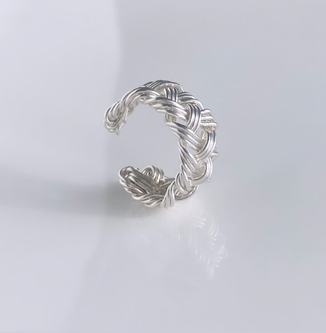 シルバーのラインを編み込んだ、ボリューム感のあるリング。