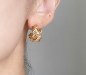 ゴールドのラインを編み込んだボリューム感のあるピアス。