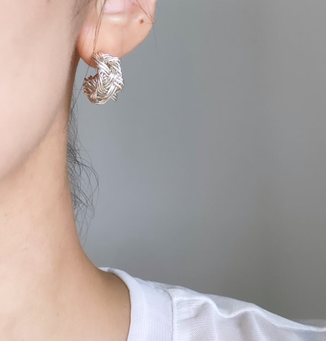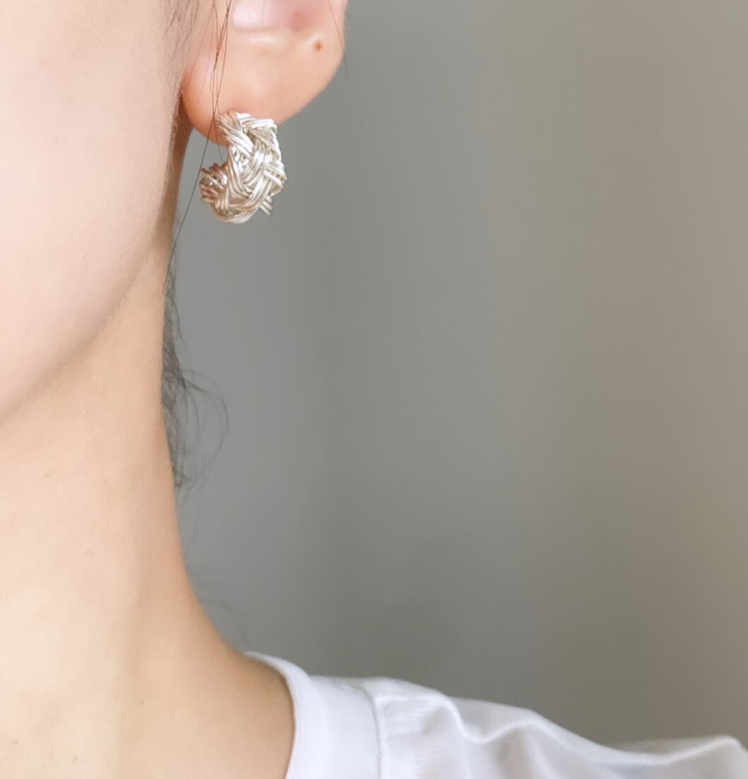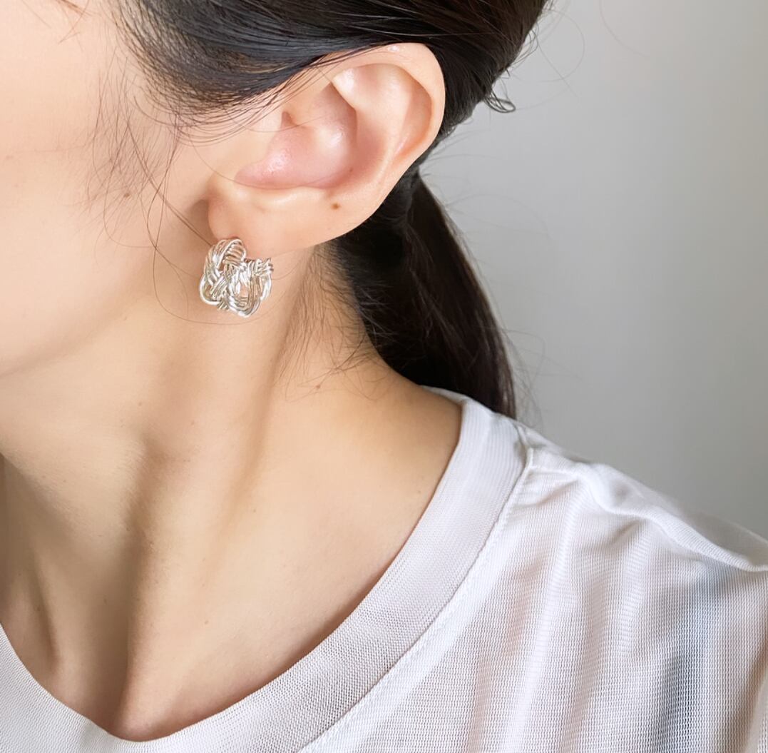 シルバーのラインを編み込んだボリューム感のあるピアス。