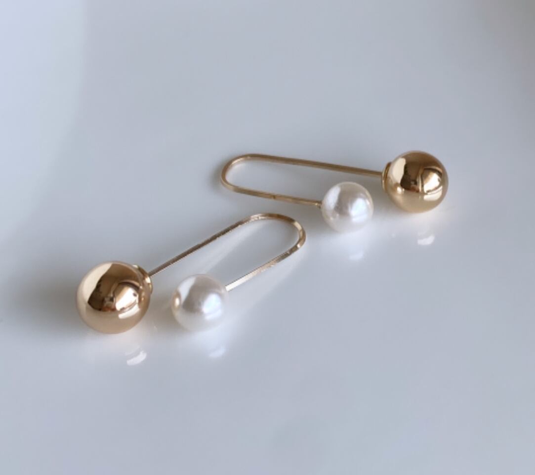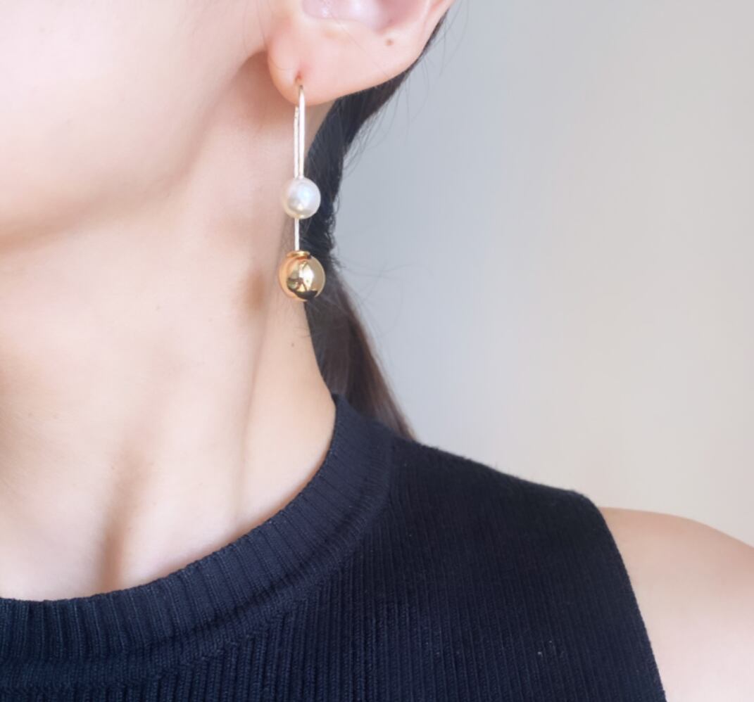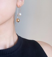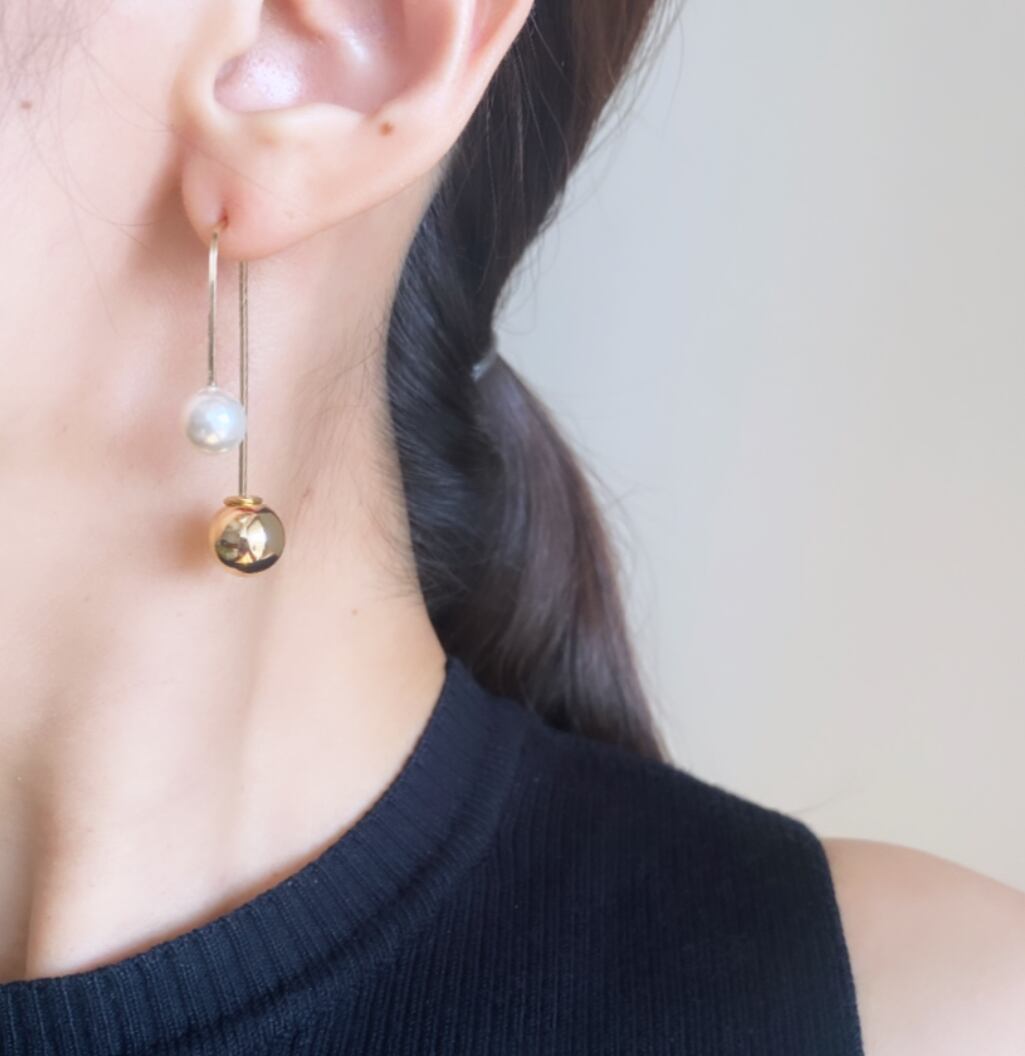 8mmパールと10mmメタルボールが存在感あるピアス。