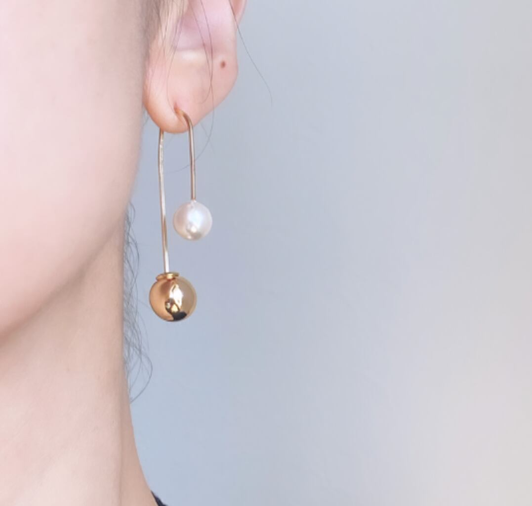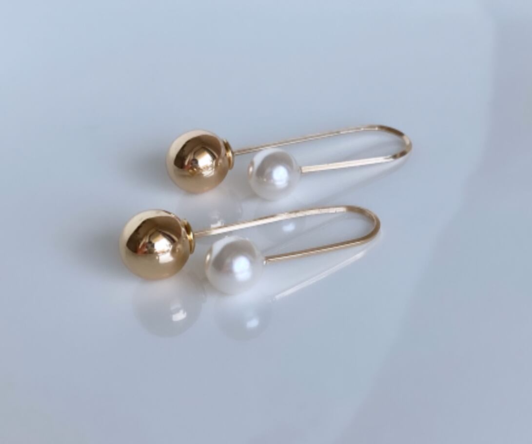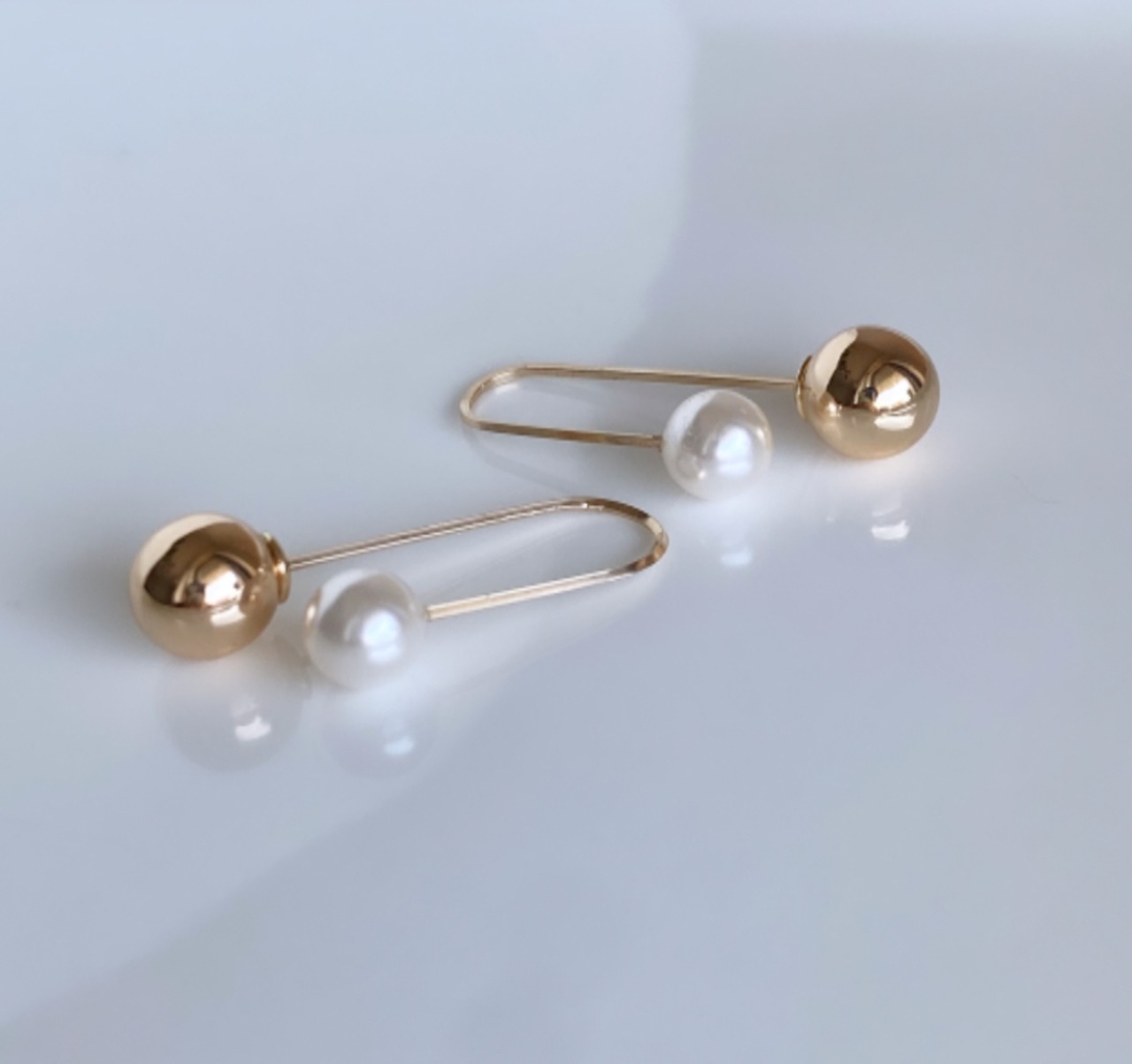 8mmパールと10mmメタルボールが存在感あるピアス。