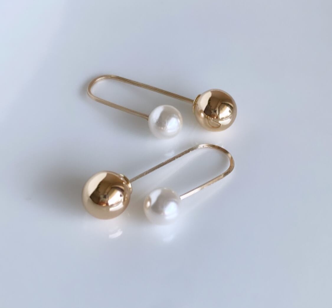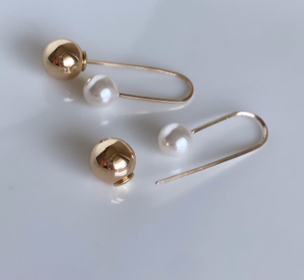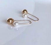 ゴールドのメタルボールキャッチを外してシンプルなパールのフックピアスとしても