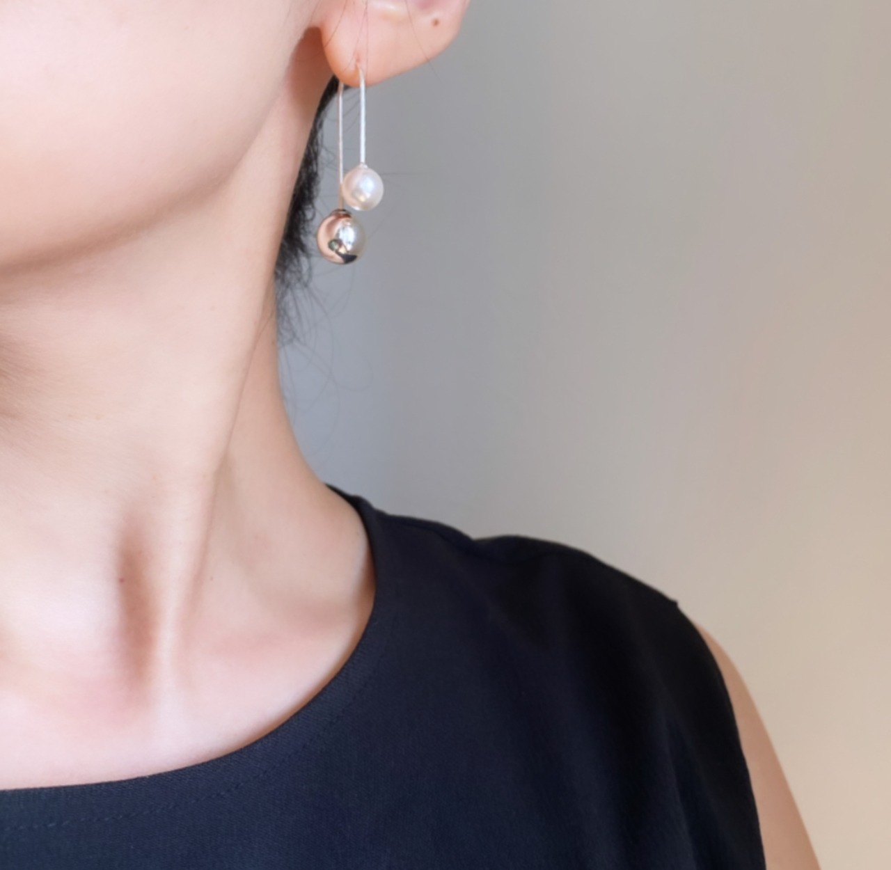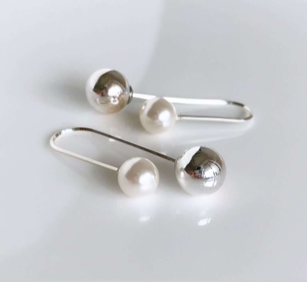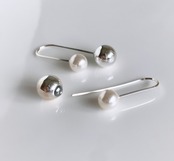 8mmパールと10mmメタルボールが存在感あるピアス。