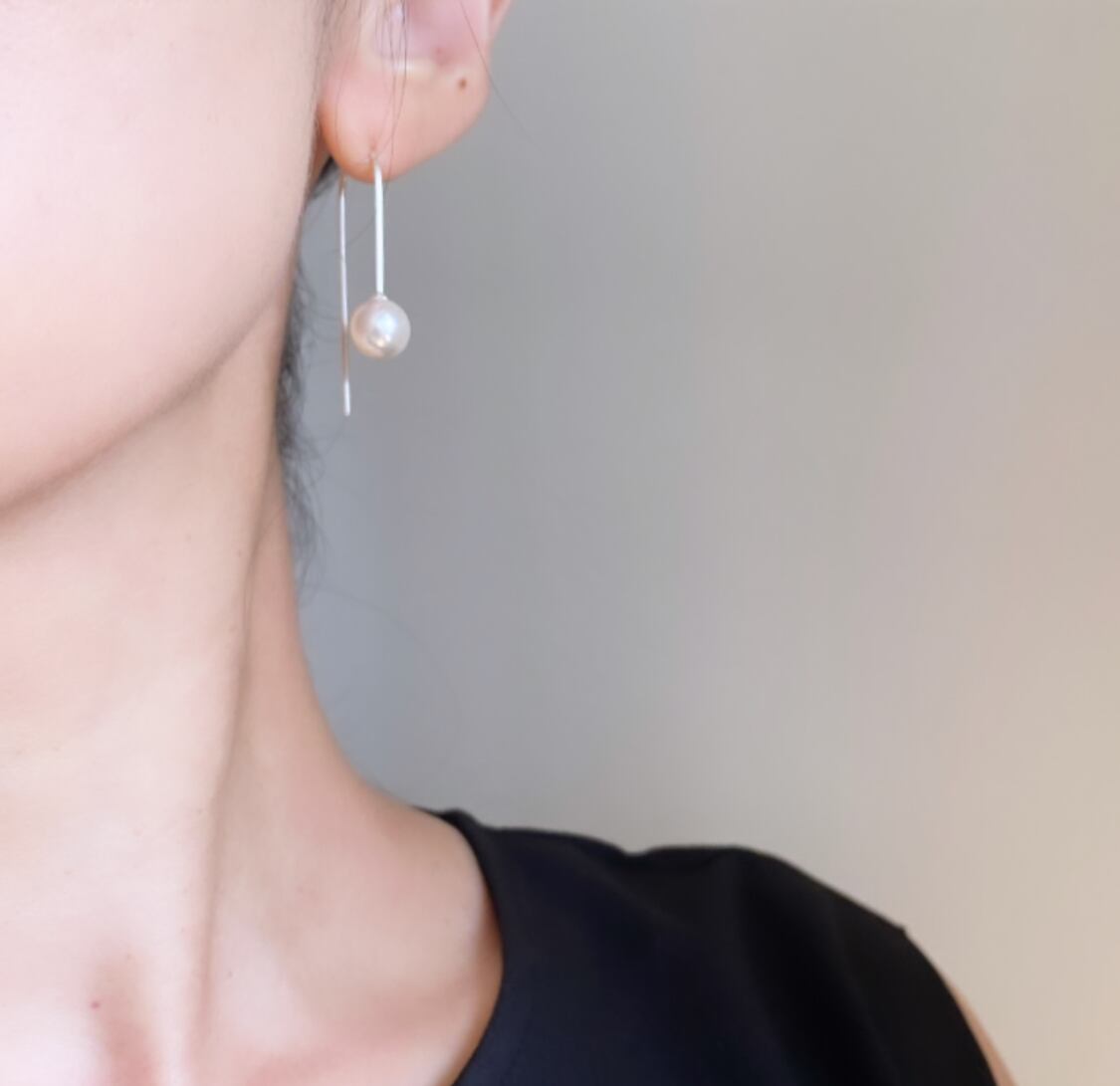 シルバーのメタルボールキャッチを外してシンプルなパールのフックピアスとしても