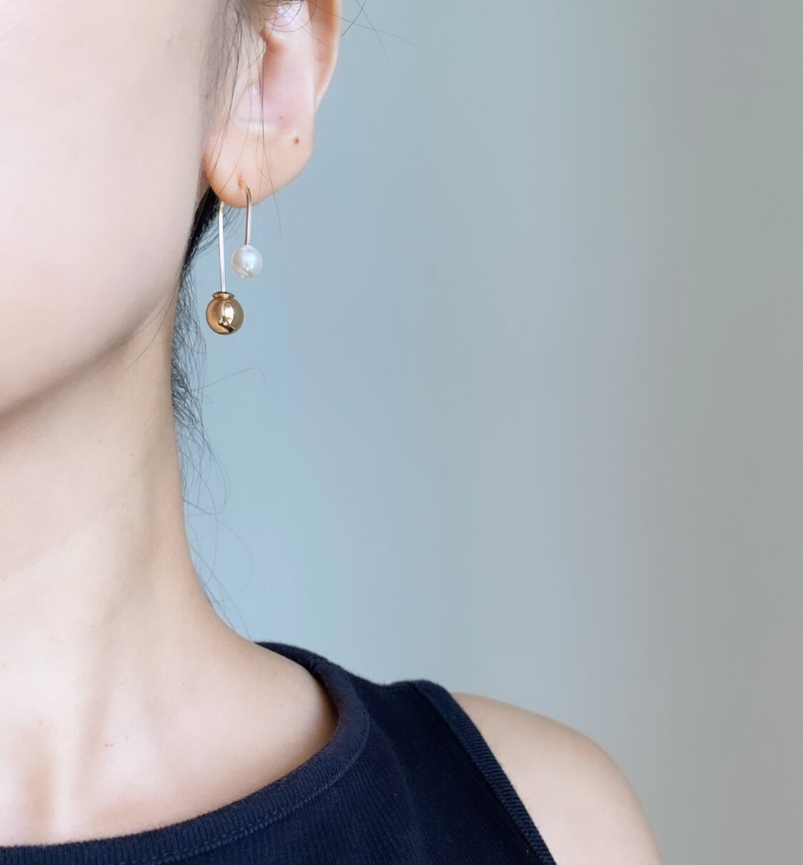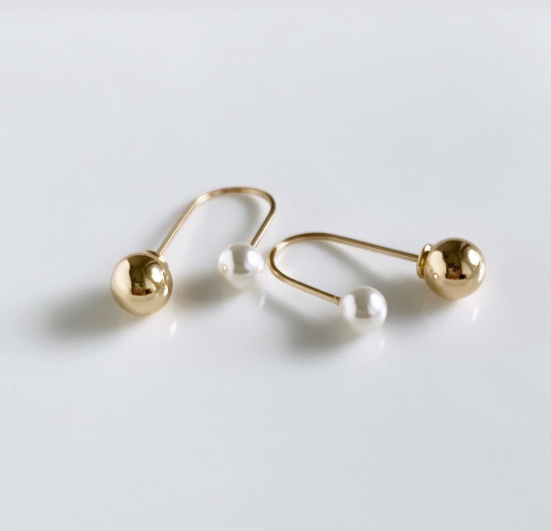 ゴールドのメタルボールキャッチを外してシンプルなパールのフックピアスとしても
