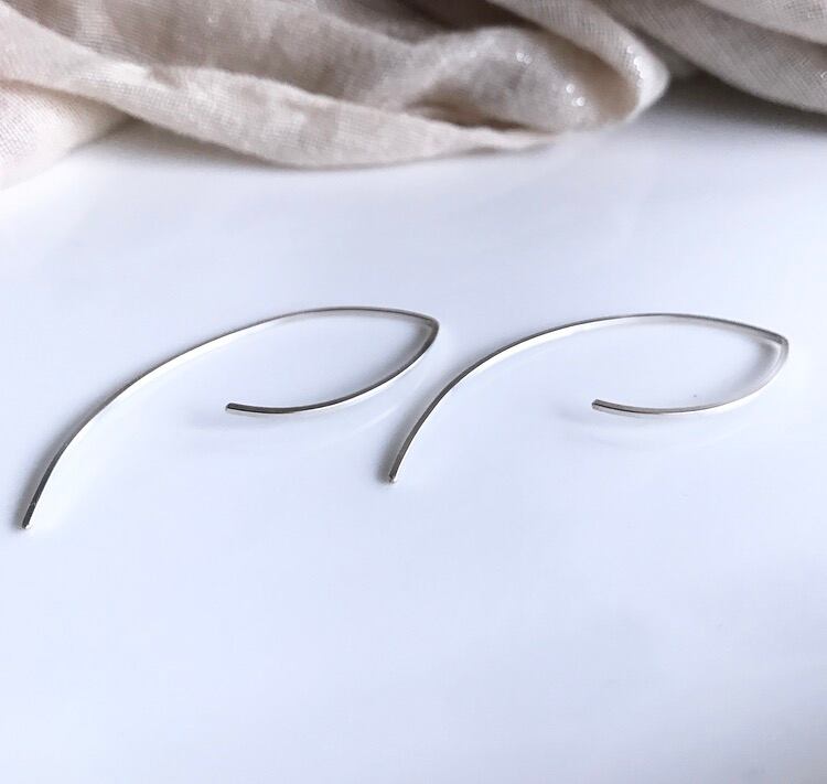サイズは長さ約4cm。耳元でキラッとクールに輝くシルバーのラインがコーディネートに艶感を与えてくれます。