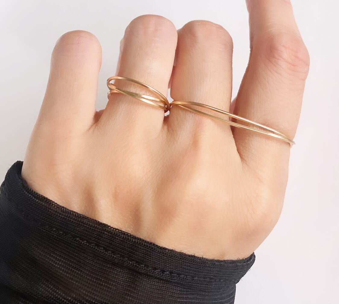 ダブルフィンガーリングは指に密着していない部分も多く、ワイヤーで繊細に制作しておりますので、家事をしたり、動きの多い作業をするシーンでのご着用にはご注意くださいませ。