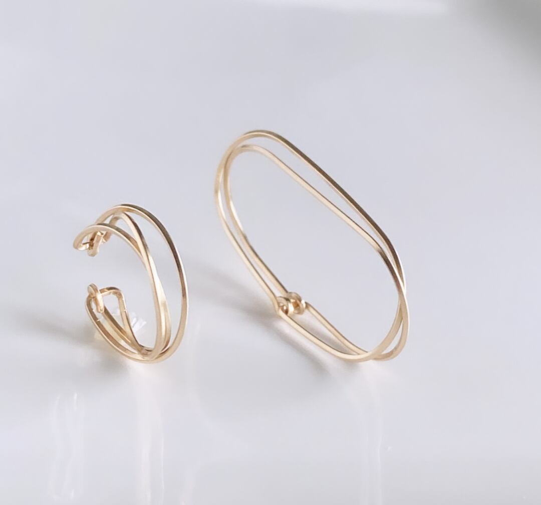 あまり動きのないシチュエーションでしたら、ダブルフィンガーリングと、もう片方の手にdiagonalリングをお召しいただいたり、イヤカフとしてお耳にお召しいただいても素敵です。