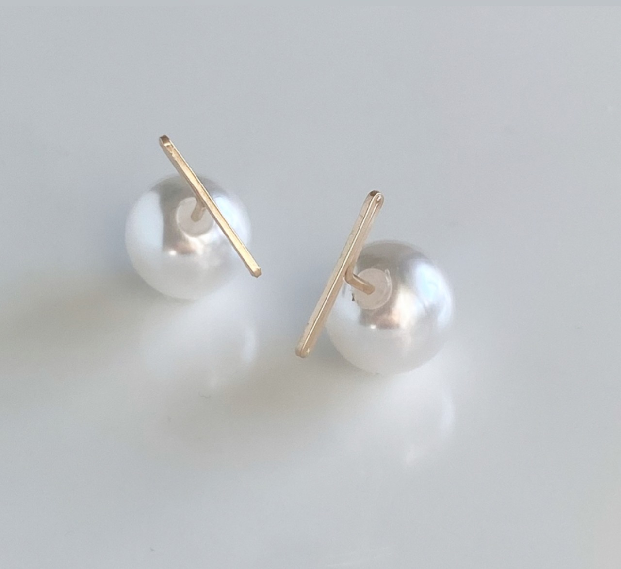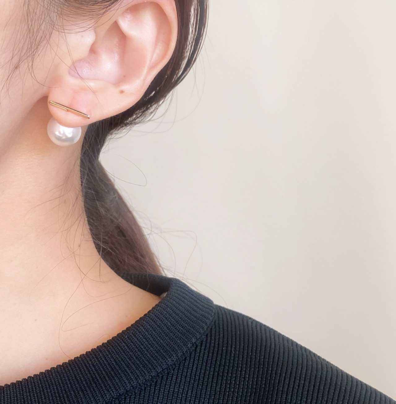 華奢なバーとパールキャッチのシンプルなスタッドピアス。
