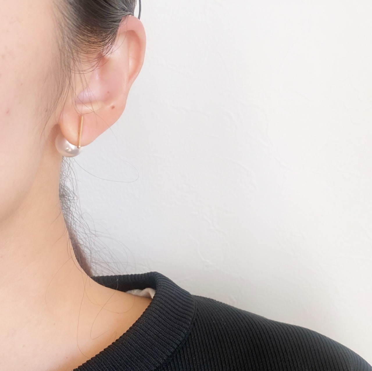 存在感あるパールキャッチが引き立つ無駄のないデザインです。
